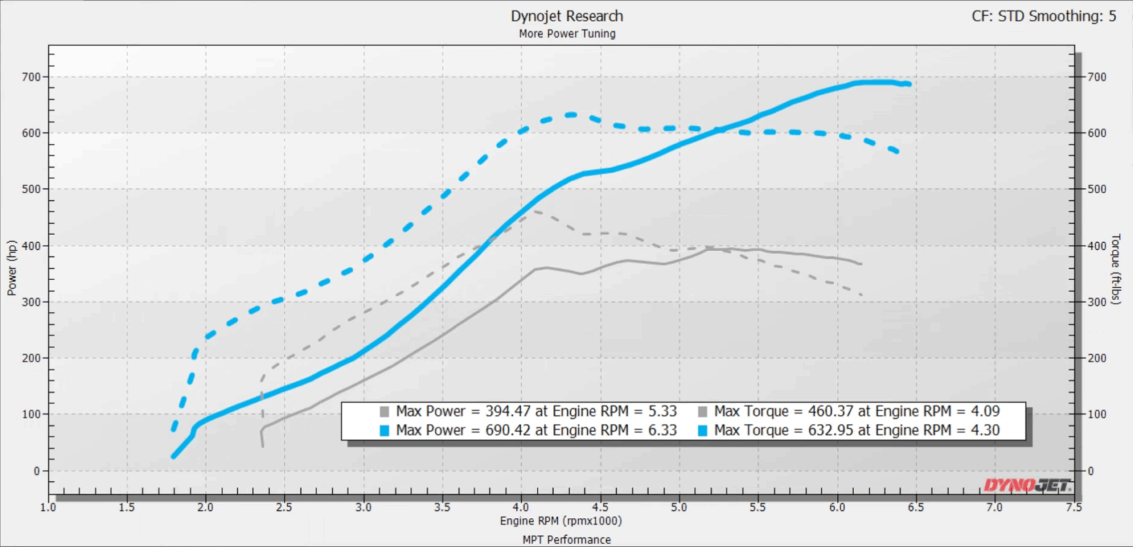 Tested on our 2021+ Raptor using the Formline® GEN3 Turbo Kit, MPT Performance recorded 690 WHP and 633 WTQ on E50 fuel at 27 PSI.
