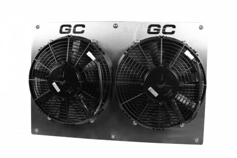 The GC Cooling Dual Fan Package measures 24″ x 16″ x 3.75″. Featuring two 11″ HP pullers cranking out 1192.98 CFM each. Designed and manufactured by GC Cooling this package is ready to mount, wire, and cool your performance vehicle. The laser-cut brackets are made from 1/4″ aluminum and are ready to be mounted. This kit comes with (2) 11″ HP Puller fans,(2) connection wires, (8) 1/4×20 bolts, and locknuts. OPTIONAL (2) fan wiring kits with 40Amp fuses and 185-degree temp sensor.