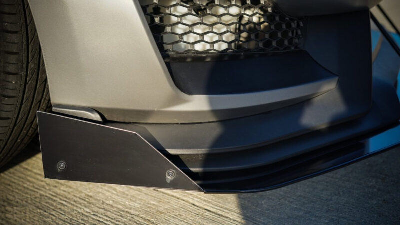 Smooths the entire bottom of the front end for more efficient airflow and downforce