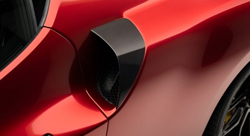 The NOVITEC Carbon Side Air Inlets for the Ferrari 296 GTB replace the factory side body intakes with exposed carbon fiber covers. These precision-crafted components enhance airflow to the hybrid powertrain while adding an aggressive motorsport aesthetic to the 296’s side profile.