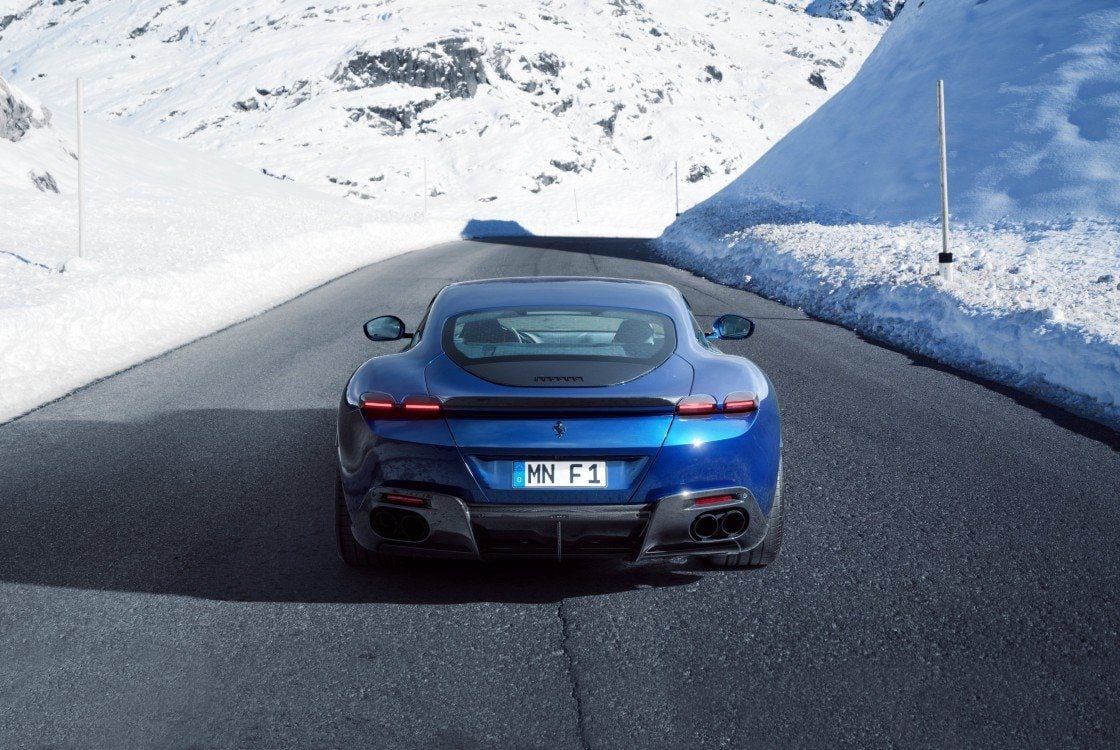 NOVITEC’s Carbon Rear Wing Cover for the Ferrari Roma and Roma Spider enhances aerodynamics and styling with high-quality carbon fiber construction. Designed for a seamless fit, it accentuates the car’s sleek design while reducing drag for a performance-focused upgrade.