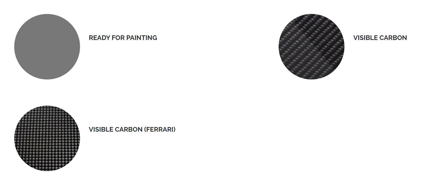 - Material: FRP, NOVITEC Visible Carbon, or Ferrari Visible Carbon