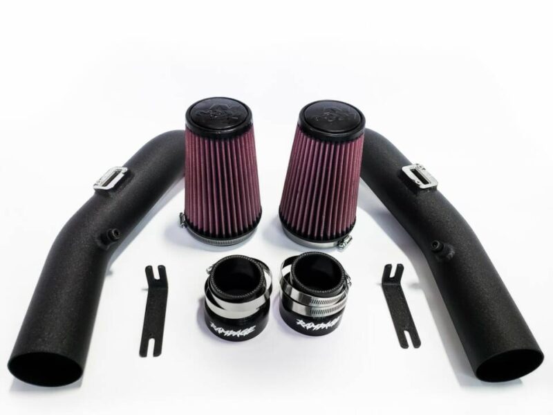Each intake kit is manufactured in the USA with a 3″ OD aluminum tubing mandrel-bent to your own specs, TIG-welded construction, with high-quality USA billet 6061 MAF flanges for a complete and reliable seal which is critical for MAF tuning. To convert to speed density, Rampage recommends using a block off the plate if leaving the sensors in the pipe is not desired. Black wrinkle powder coat is standard which will match the majority of available piping kits on the market for a congruent finish in your engine bay.