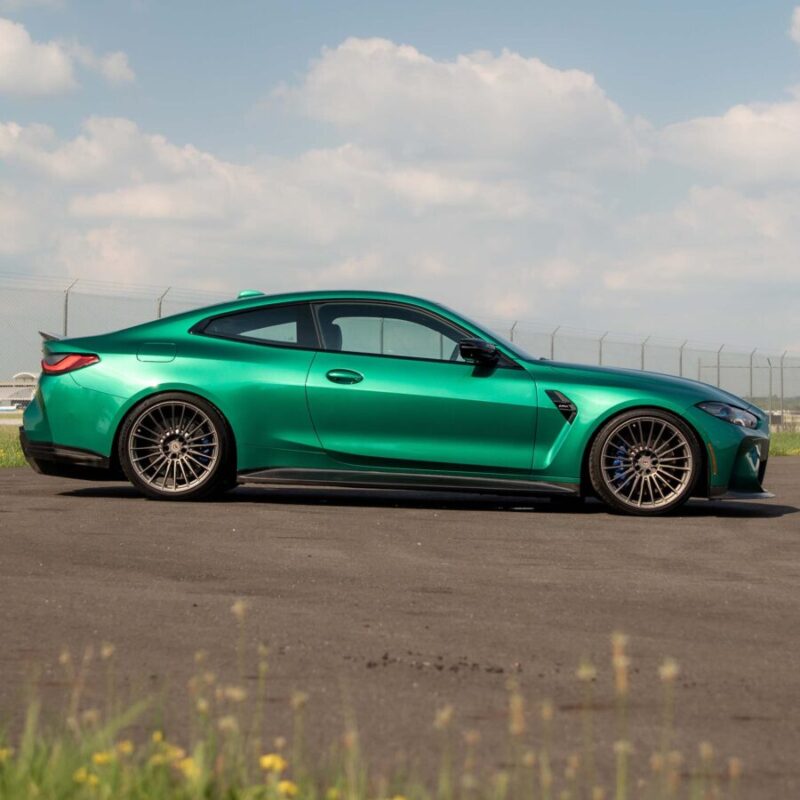 Custom carbon fiber side skirts for your G82 M4. RSC”s unique side skirt design is wider and taller than the stock black trim pieces creating a more aggressive stance. These skirts are a must for anyone running extra wide wheels and fill in the area between the frotn and rear tires. These skirts install via the factory mounting locations in the M4 rocker panel. The RSC Skirts replace the stock black trim completely with a full carbon fiber side skirt that looks great and with a factory fit and finish.