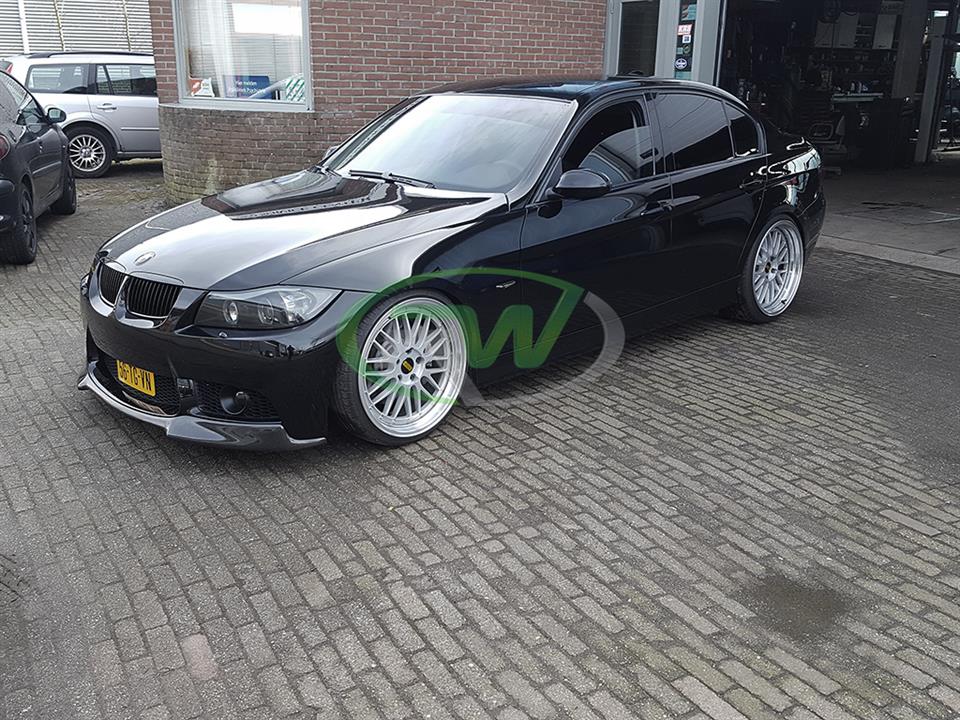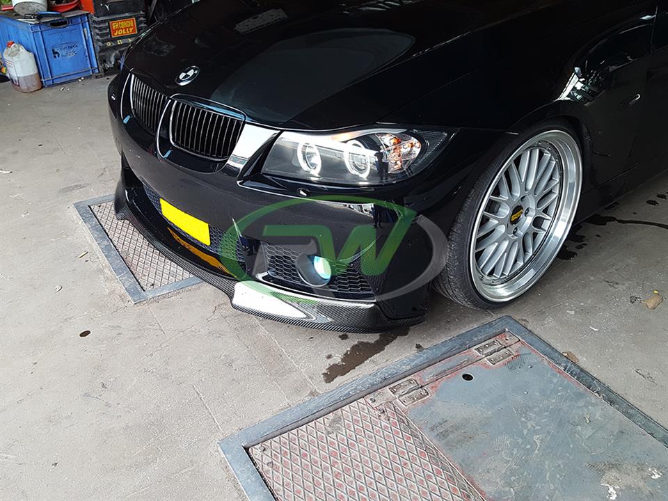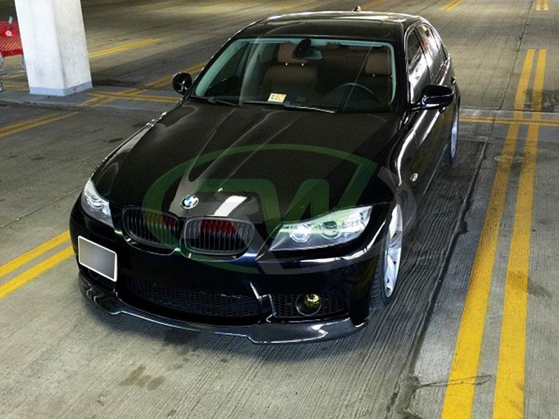 If you have a BMW E90, E91, E92 or E93 3 series and have upgraded to an M3 style front lip bumper then you might be aware of the difficulty of finding a front lip spoiler. RW Carbon has you covered with this carbon fiber front lip spoiler for the E9x 3 series models with an aftermarket M3 styled front bumper. The M3 styled front bumper elevates the appearance of your E90, E92 or E93 but adding a front lip takes it to another level. This is a 1 piece design and adheres using self-tapping screws which are included with the purchase. The front lip is made using rear carbon fiber in a 2×2 weave pattern. Each piece is clear coated to protect it from UV rays and other harsh elements found out on the road. It fits all 325i, 328i, 330i and 335i models.