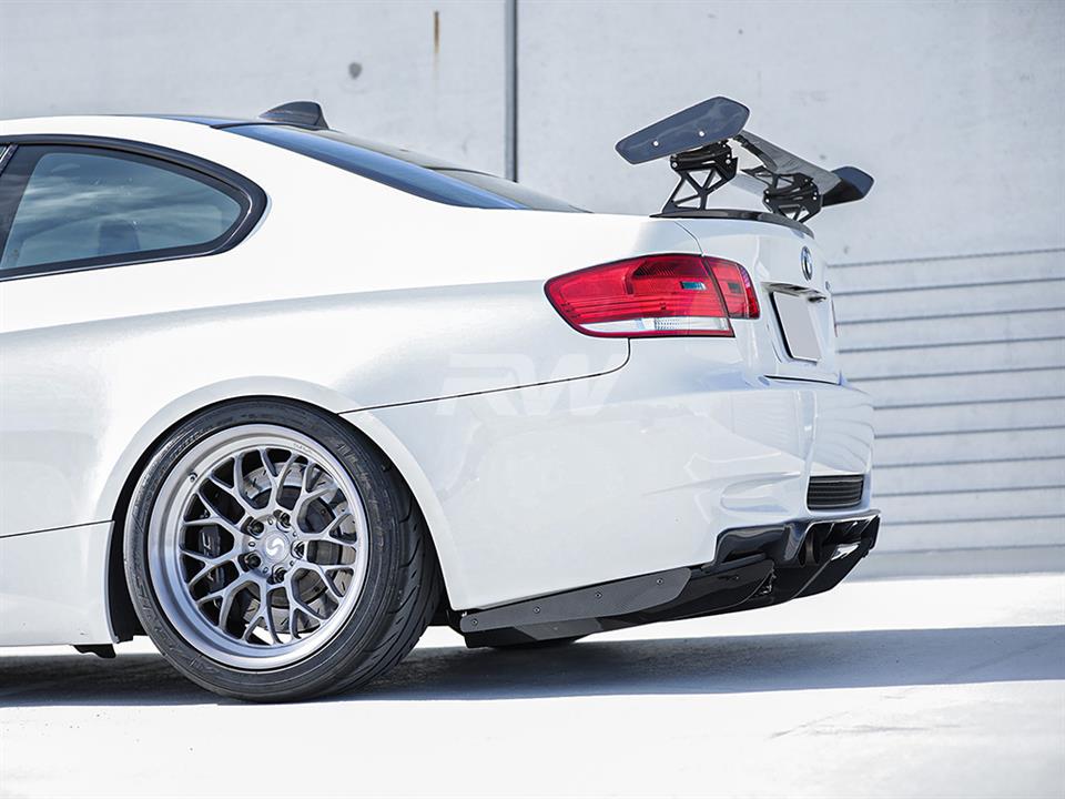 Do you want the most aggressive rear diffuser that money can buy for your BMW E92 M3? Then RW Carbon has you covered with this Varis style carbon fiber diffuser and under tray. This diffuser is ideal for enthusiasts looking for the most aggressive look possible to distinguish themselves from others along the road. Expect great fit. This diffuser will match your carbon fiber roof or other Carbon Fiber accessories as it comes in a 2×2 carbon fiber weave. Superb fitment and quality can be expected when you choose RW Carbon as your source for BMW E92 carbon fiber parts like this Varis style diffuser. It will include all the pieces and hardware to install. Professional installation is highly recommended due to the complexity of this product.