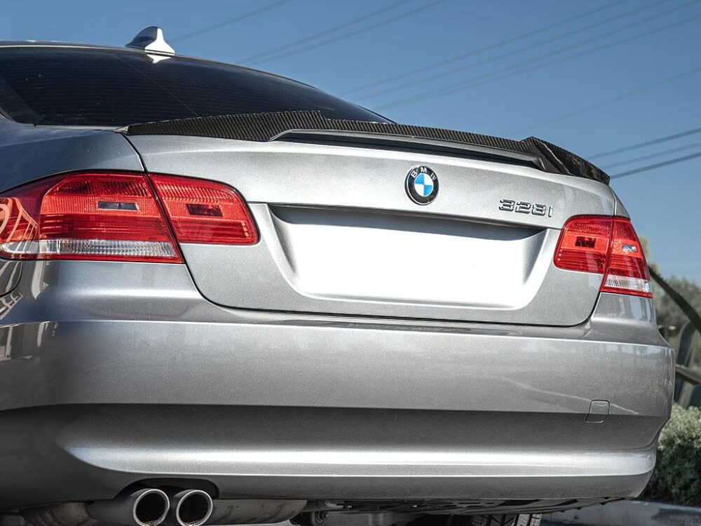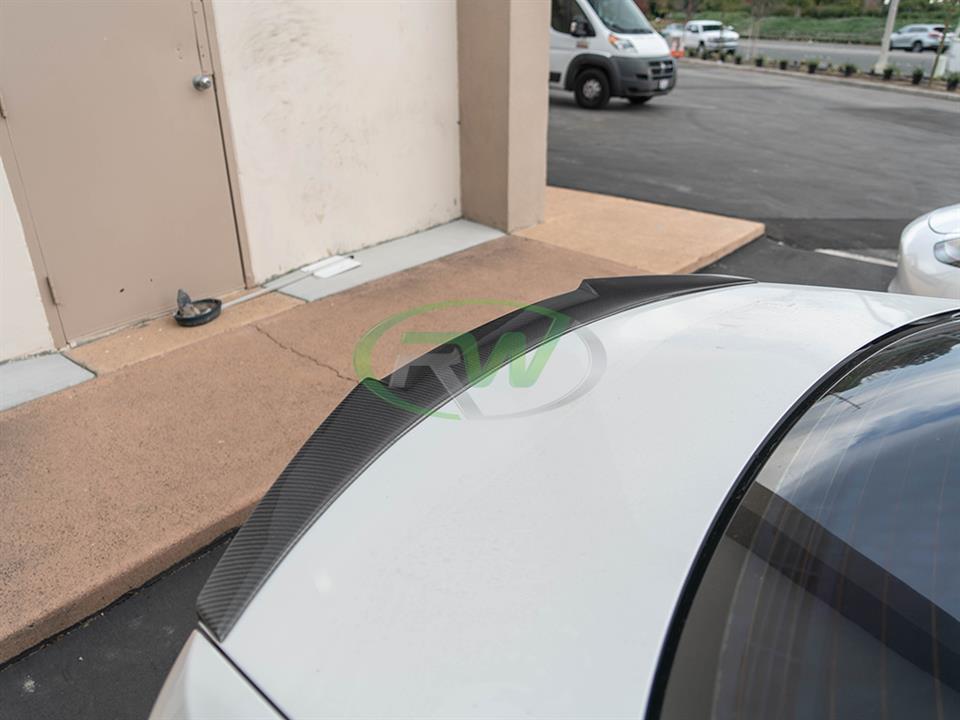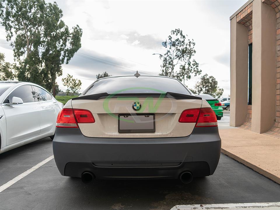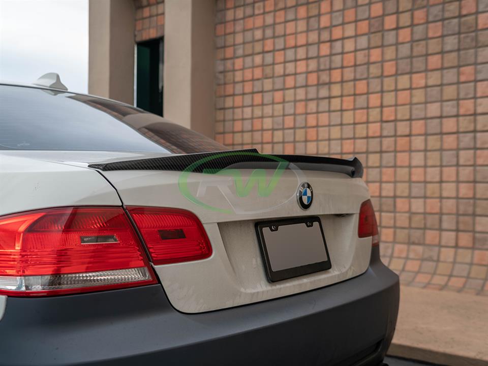 Do you want to give your BMW E92 3 series a M4 inspired feel? RW Carbon is proud to present our M4 Style Trunk Spoiler for the BMW E92 coupe. These fit all 328i and 335i models as well as the M3 and are constructed out of 100% real dry carbon fiber in a 2×2 weave pattern. This spoiler will replace your OEM or any other trunk spoiler and reinstalls using 3M double sided tape. Each piece is clear coated for great UV protection and a glossy finish. Prior to shipping to you we do one last quality check to make sure you receive a great looking M4 style trunk spoiler.