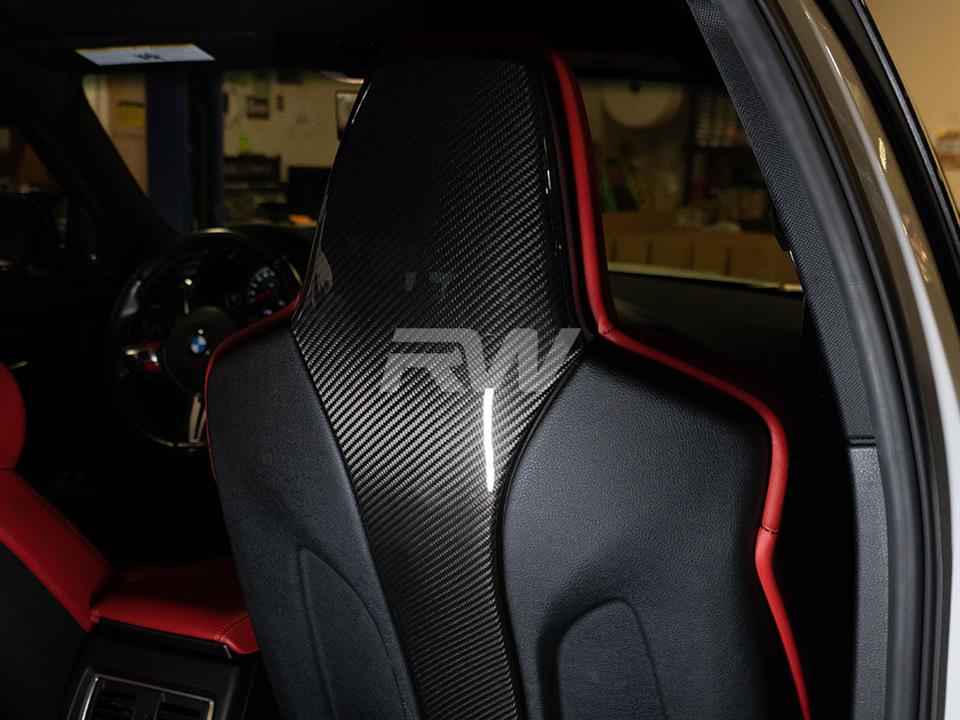 Love the look of carbon fiber on your F80 M3 or F82/M4? Then you need this interior upgrade – Carbon Fiber Seat Backs for the F80 M3 and F82 M4 (Will not fit F83 M4). Our carbon fiber M3/M4 seat backs feature 2×2 carbon fiber construction that will perfectly match the interior trim of your car. Installation is easy as they install with 3M tape and promoter. Each order of the seat backs includes 4 pieces, 2 pieces for the driver and passenger seats and 2 rear headrest pieces. Our seat backs are made from 100% full carbon construction which provides the flushest OEM fitment which your M3/M4 requires.