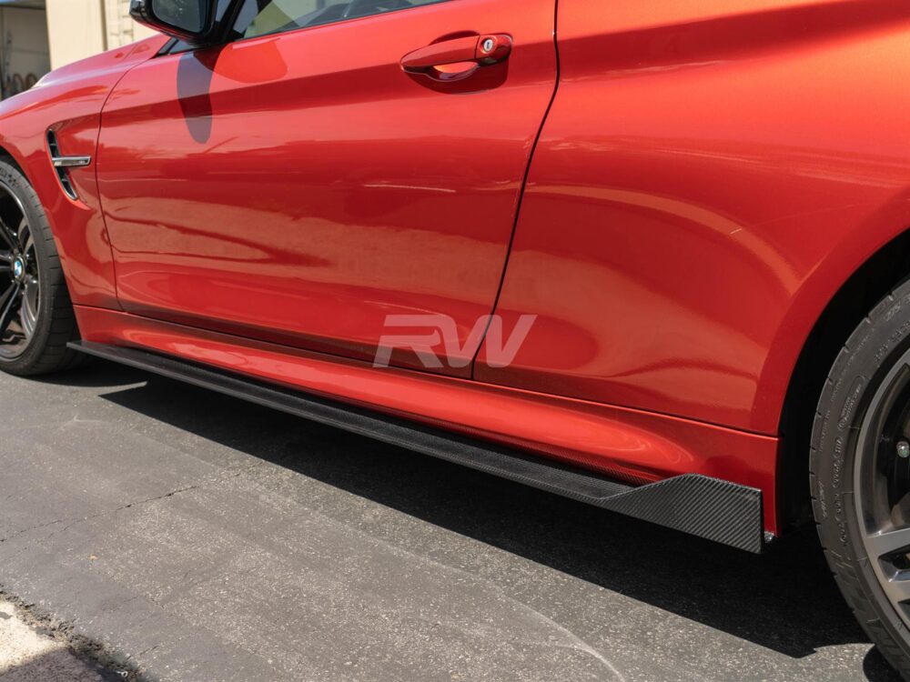 Looking to greatly enhance the appearance of your F82 M4 while still getting a great deal? Check out our RW Signatures’ carbon fiber aero package designed just for the BMW F82 M4! All parts in this bundle are designed in-house by RW Carbon, utilizing our high-quality 2×2 carbon fiber weave and finished with a clear coat to increase its durability. This RWS carbon fiber aero package comes with a front lip spoiler, a trunk spoiler, side skirt extensions, and a rear diffuser. Tailored with the daily driver in mind, these kits are designed to blend seamlessly with the F82 body while maintaining sufficient clearances to reduce the risk of damage to your new carbon fiber parts.