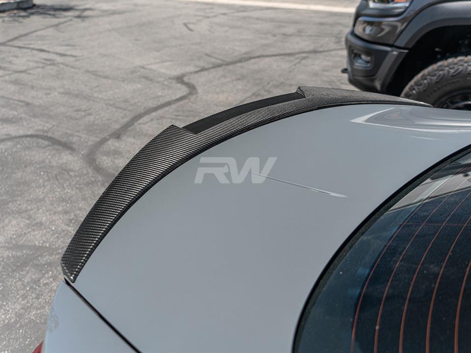 Only choose the best for your BMW F82 M4 and go with the RW Carbon M4 Style Carbon Fiber Trunk Spoiler. Our carbon fiber trunk spoiler features genuine dry carbon fiber construction which produces a spoiler that is lightweight and incredible durable. Installation just requires double-sided 3M tape with no drilling or permanent modifications required. To ensure all of the M4 style trunk spoilers maintain a glossy shine we finish them with a thick clear coat. Superior style and product quality can be expected when you choose RW Carbon for your carbon fiber trunk spoiler. Please contact us if you have any further questions regarding this F84 M4 styled trunk spoiler.