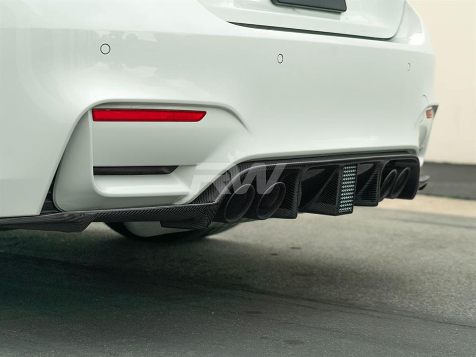 Professional installation is always recommended for RW Carbon’s products including this BMW F80 F82 F83 M3 and M4 3D Style Carbon Fiber Diffuser. This diffuser will install using the pre-existing mounting tab locations from the OEM diffuser. For the side pieces it will use a combination of OEM mounting locations and a few self tapping screws for extra strength at high speeds. Installation time is typically less than 60 minutes. If you have any questions please reach out or have us handle the install for you.