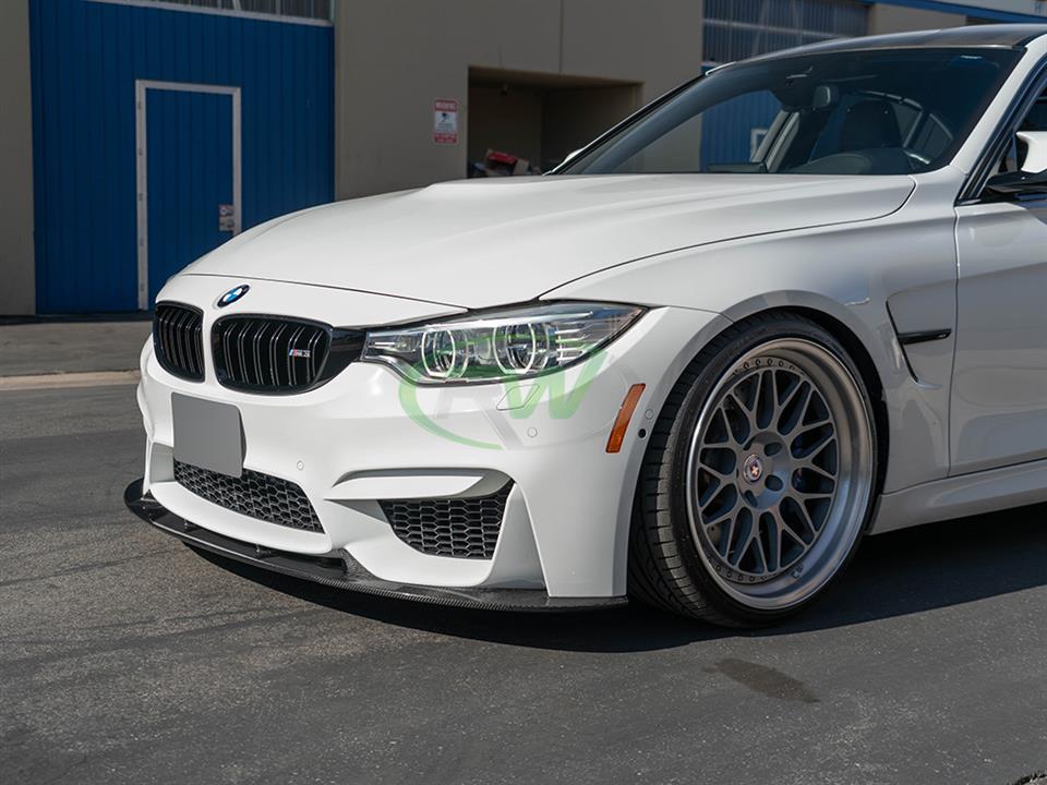 The 3D style front lip spoiler for the F8X M3 and M4 simply installs using self tapping screws which will be included. Professional installation is always advised.