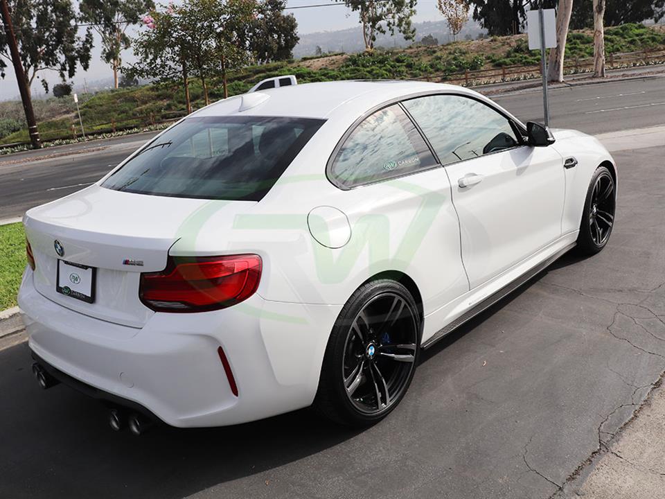 If you have an RW front lip and rear carbon fiber diffuser installed on your M2 then the next item to complete the look is a set of these BMW M2 carbon fiber side skirt extensions. These M2 carbon fiber side skirts mount below your current side skirt for a new aggressive Carbon Fiber appearance. Installation is completed with self tapping screws, which are included. Each side skirt is hand crafted from the best raw materials and genuine 2×2 carbon fiber which produces an item you can be proud to install on your car. After manufacturing we complete each M2 carbon fiber skirt with a UV resistant clearcoat which prevents discoloration over time which can be common with lower quality products. As always, purchase your M2 side skirt extensions from RW Carbon without worry as your order is backed by our fitment and quality guarantee.