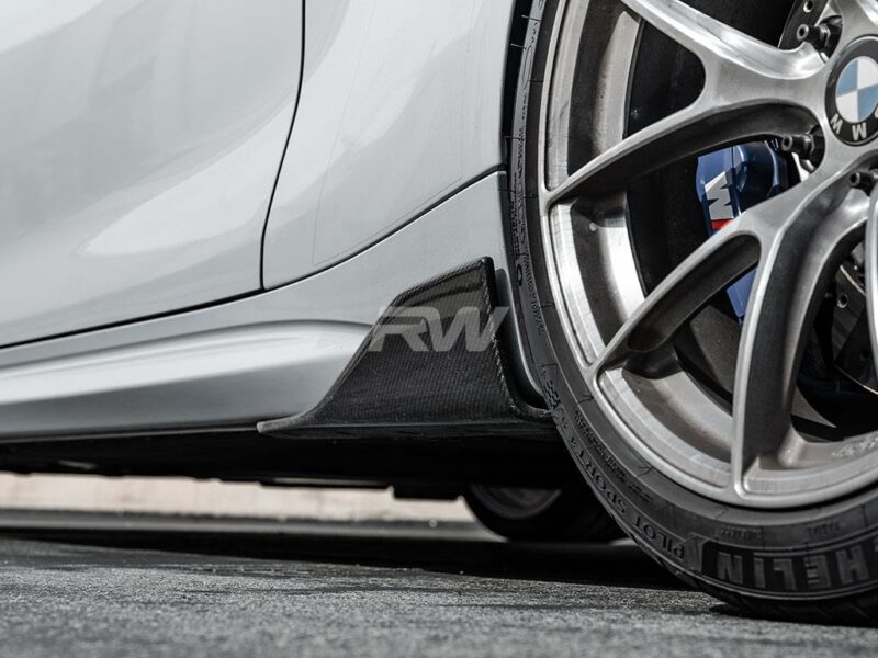 In order to complete your carbon fiber aero kit for your BMW F87 M2, these 100% dry carbon fiber side skirt winglets are a must have. They simply install to the rear section of your side skirt and add that must needed touch that brings your Carbon Fiber theme together. Installation is a breeze using self-tapping screws, which are included with purchase. These carbon fiber winglets are of course constructed out of genuine carbon fiber and are finished off with a clear coat for a glossy shimmer. Each and every piece that leaves RW Carbon, including these side winglets are quality checked in house before they are shipped worldwide. If you have any questions about these F87 M2 skirt winglets please reach out to one our Carbon Fiber Experts.