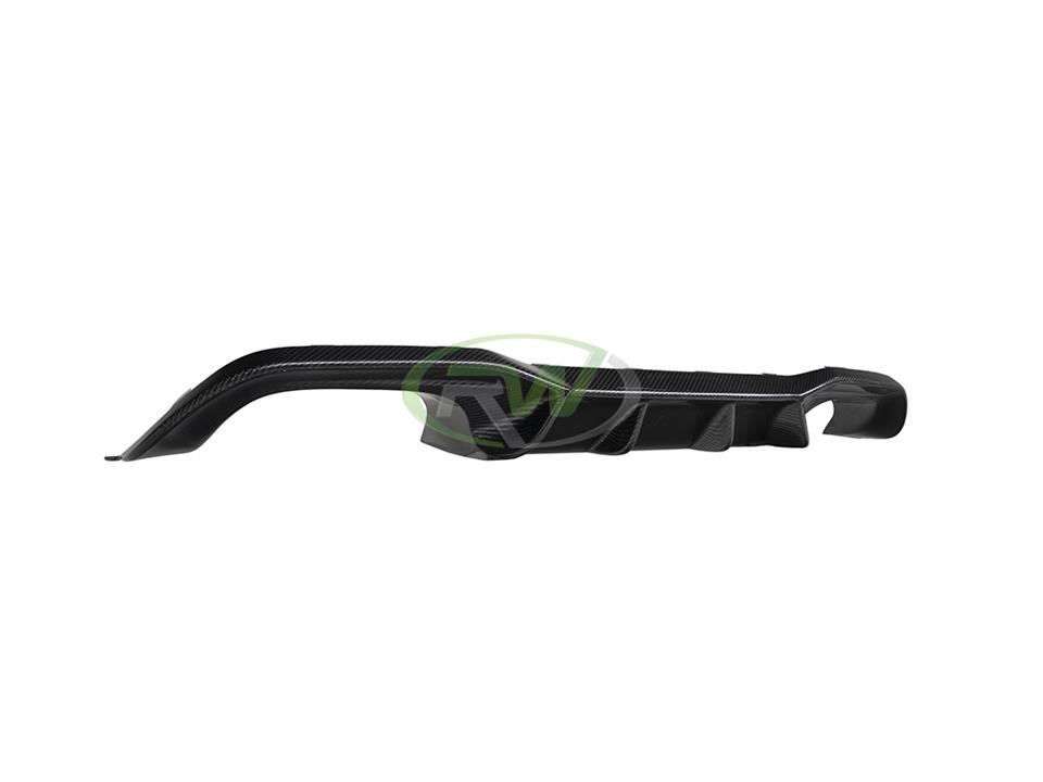 Accent the rear end of your M2 or M2 competition with this sleek looking DTM carbon fiber diffuser from RW Carbon. Each DTM M2 diffuser is hand produced with 2×2 carbon fiber weave that we perfectly design to match OEM carbon fiber parts as well as other RW parts you plan to install on your car. Installation for the diffuser is purely bolt-on and does not require any extra screw holes into your car – Simply mounted with OEM style tabs and utilizing OEM bolts on the bottom. After manufacturing, each M2 DTM Carbon Fiber diffuser is completed with a UV resistant clearcoat which ensures a nice lustrous sheen and protects it from the elements. Unlike many of our competitors out there, all product images and installed shots of this item are of the exact item you will receive. Upgrade your boring factory plastic diffuser to this sleek carbon fiber DTM diffuser for your M2 from RW; and get a product that fits great and looks amazing.