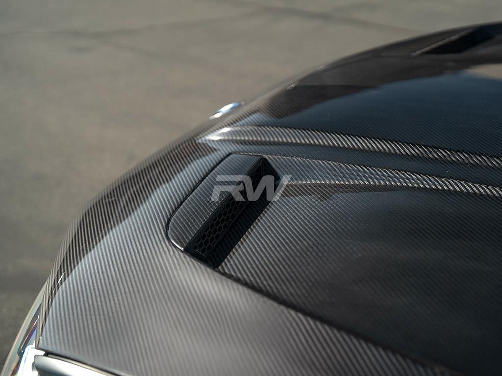 Installation for the RW carbon hood is quite simple, as it uses OEM mounting locations. All of your factory hood accessories will carry over. Our hood also has OEM-style studs, unlike some other options on the market which makes installation more difficult. Installation can be completed in around 2 hours and requires standard hand tools. If you need installation in Southern California, we can get it done for you!