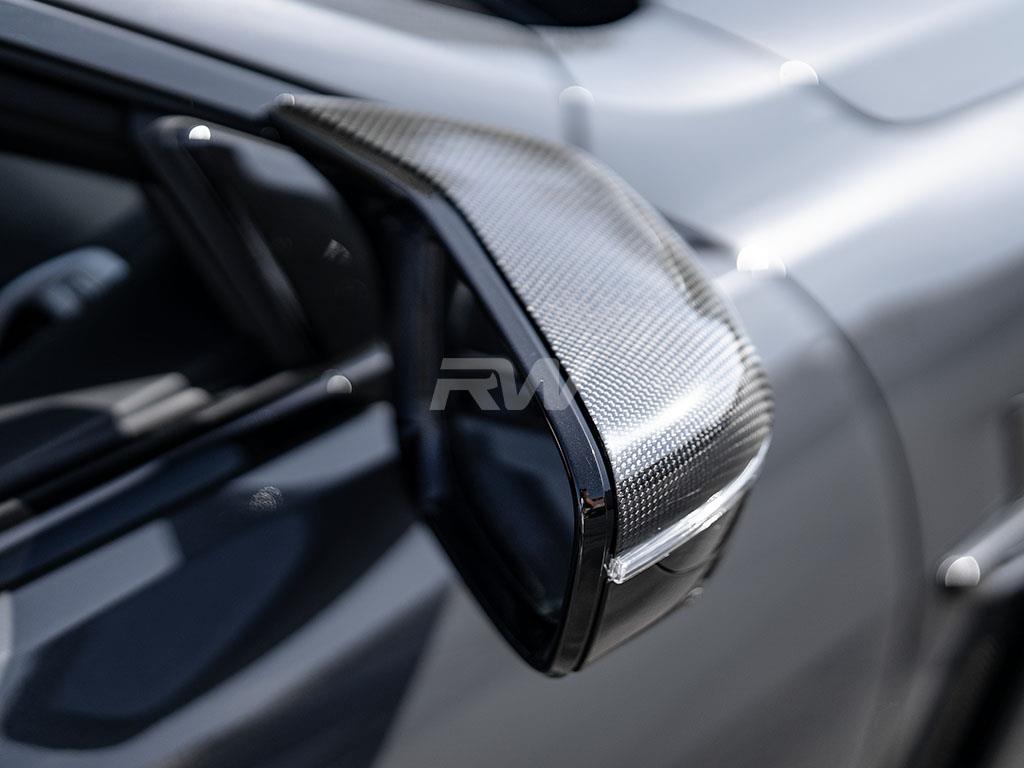Professional installation is always recommended for RW Carbon’s products including these M Style Carbon Fiber replacement caps. These mirror caps replace your existing mirror caps and use existing mounting locations.