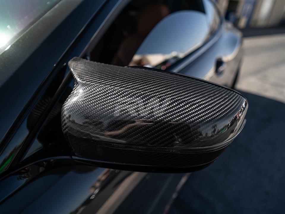 New for your BMW our M Style Carbon Fiber Mirror Cap Replacements. Our M Styled Mirror Caps will fit the BMW G14, G15, G16, G20, G22, G23, and G30 models. These mirror cap replacements offer a more M styled look over the stock mirror caps. These mirrors are extremely popular among other BMW owners since they give your BMW a more sporty and aggressive touch. Our mirror caps are made using 100% carbon fiber so not only are they super lightweight, but the also very strong and durable. These caps are backed by a fitment and quality guarantee to ensure proper fitment on your BMW.