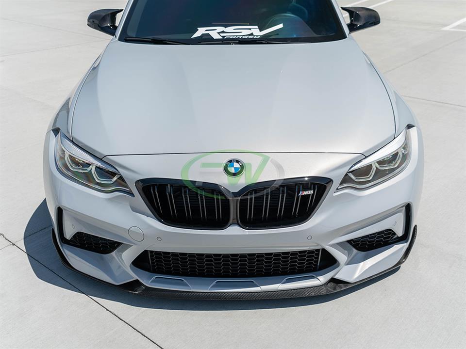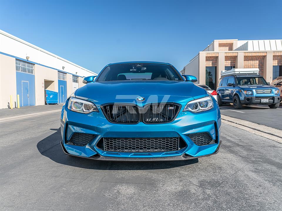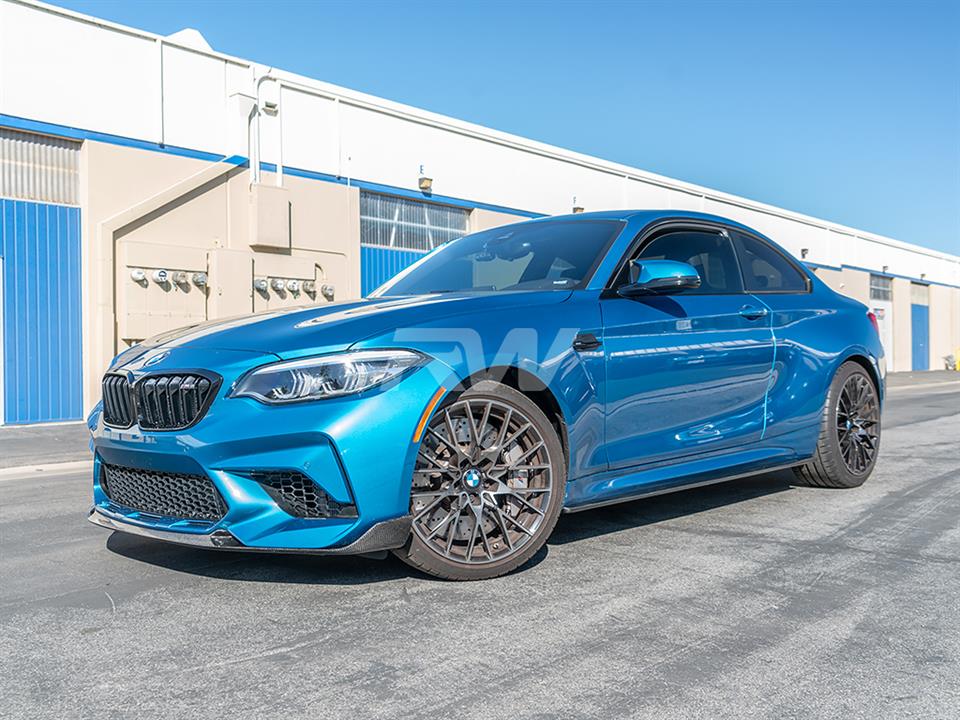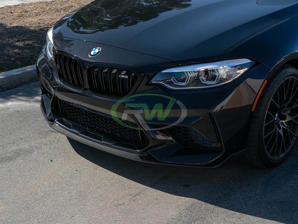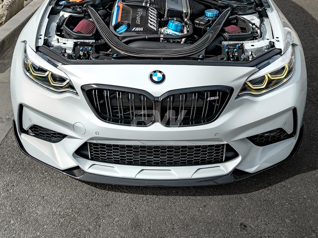 Designed to take your 2019-2021 F87 M2 Competition to the next level, this lip is the perfect addition to improve the front end of your M2. With aggressive styling and great fitment, this piece is a no brainer for people looking to add some carbon fiber to their M2 Competition. This piece uses the same 2×2 carbon fiber weave as our other products so every piece on your M2 will work together. This Carbon fiber front lip installs easily with just self tapping screws, which are included with your purchase. As always, this piece is backed by our fitment and quality guarantee and is protected by our UV resistant clear coat to ensure no fading or discoloration occurs.