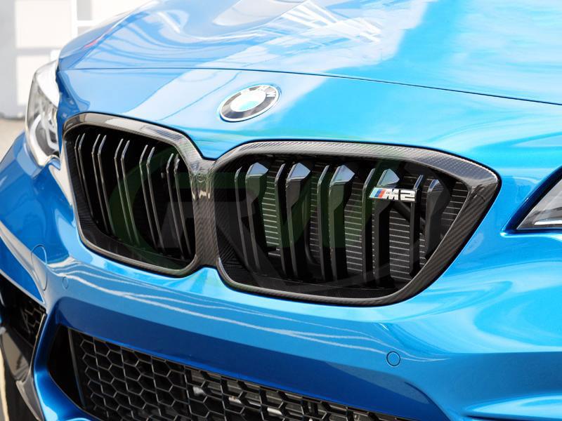 We have released a carbon fiber grille option for the BMW F87 M2 competition models. This full carbon M2 competition grille replaces your current grilles with an improved visual appearance. Installation can be done in minutes and instantly improves the appearance of your F87 M2 Competition. It is made using 100% carbon fiber in a 2×2 weave pattern. They are then clear-coated for a glossy shine that will last for years. Please contact us with any questions you may have.