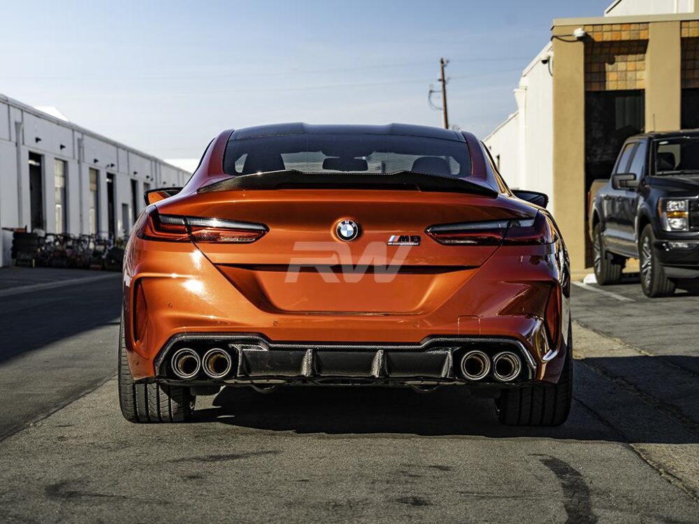 nProfessional installation is always recommended for RW Carbon’s products including this BMW F93 M8 carbon fiber DTM rear diffuser. This rear diffuser takes the place of your existing M8 diffuser and uses the same mounting locations. Rear bumper removal is required. If you need more guidance please contact us or we can install it for you at our Anaheim CA facility.