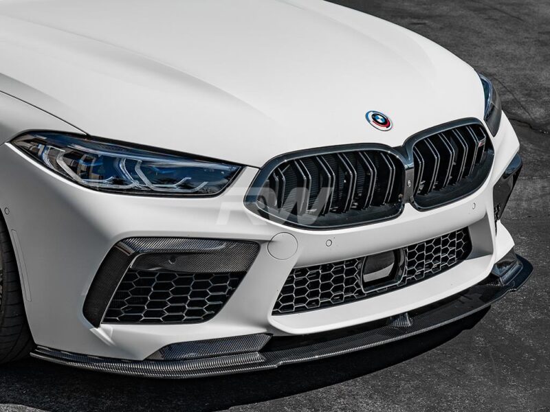 Upgrade the exterior aero of your BMW F91 convertible, F92 coupe or F93 convertible M8 with our DTM carbon fiber front lip spoiler. This front lip features full dry carbon fiber construction in a 2×2 weave pattern that’s matched with a polished clear coat for lasting UV protection and a high gloss finish. As with all RW Carbon products, you can expect bolt-on installation that requires no special modifications to your vehicle. All that is required to install are self tapping screws which will be included. In order to ensure the highest quality carbon fiber on the market, we quality check every single one of our carbon fiber pieces that are shipped out to ensure there is no damage. If you have any questions, our Carbon Fiber experts are standing by to help you with your M8 build.