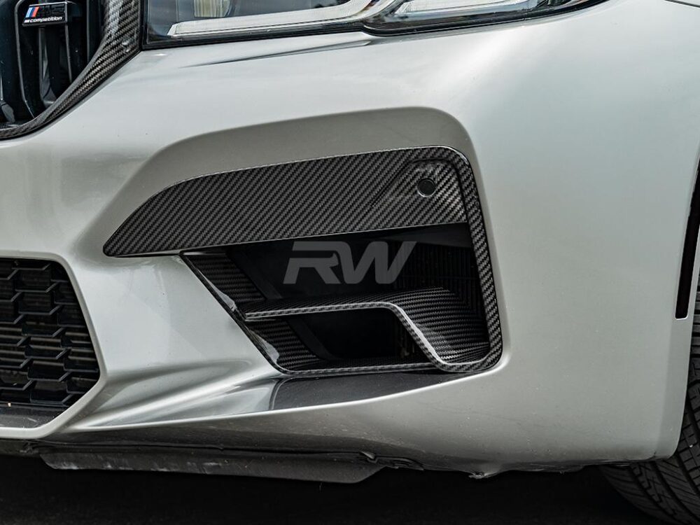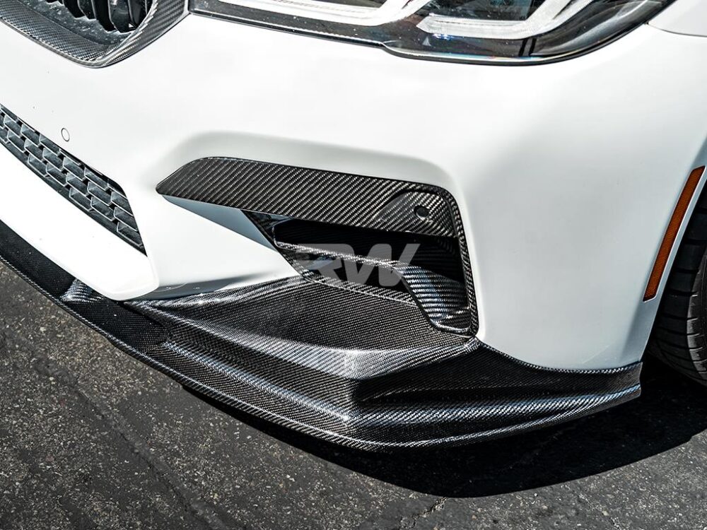 Looking to enhance the front end of your BMW F9X M8? These dry carbon fiber front bumper trims are the perfect amount of aggressive styling to make your M8 stand out from the rest. These carbon fiber front bumper trims give the front end of your BMW F9X M8 a transformed look and only takes 30-60 minutes to install. The look of the carbon fiber accents on the front end of the F91 F92 F93 helps shape the existing look in a more appealing way. These pieces are backed by a fitment and quality guarantee to ensure you are always getting a product that looks good and fits great.