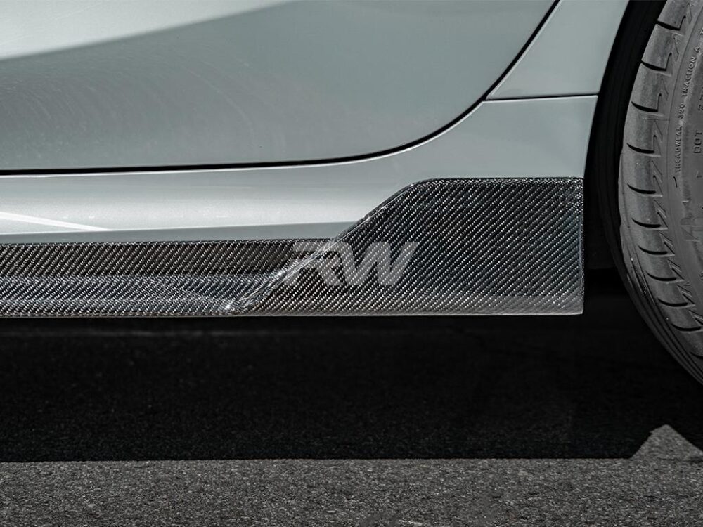 Enhance the sporty look of your BMW G20 3-Series with our DTM Carbon Fiber Side Skirt Extensions. These sleek and durable side skirts are crafted from genuine 2×2 carbon fiber, offering both style and durability. Finished with a high-gloss clear coat for a nice shine and UV protection, these side skirt extensions will seamlessly complement any other carbon fiber upgrades you have on. Installation is quick and straightforward, with just a few self-tapping screws required. Backed by RW Carbon’s quality and fitment guarantee, these side skirts are a must-have for any G20 owner looking to elevate their BMW’s appearance.