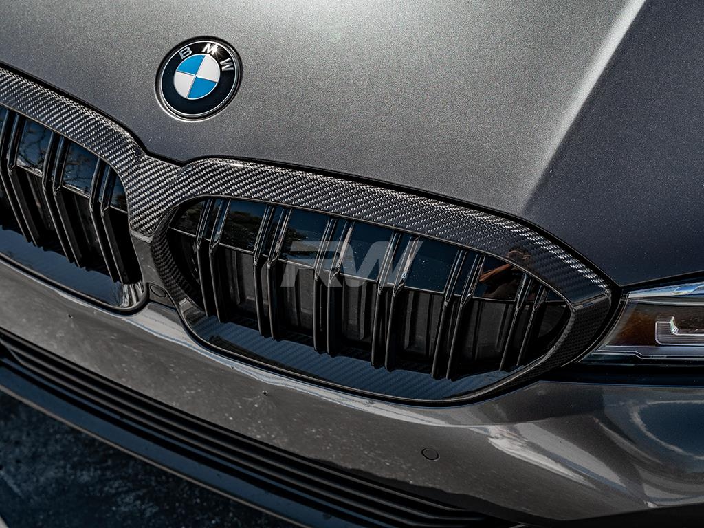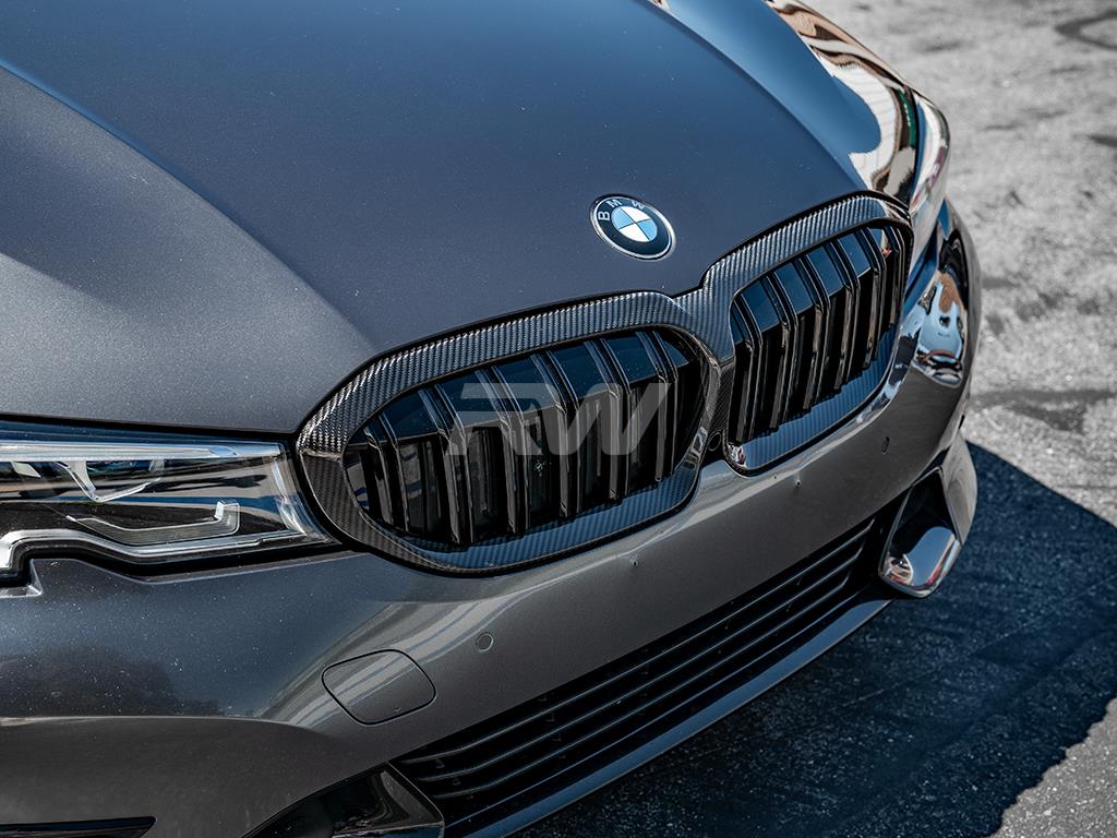 Elevate the aesthetic appeal of your BMW G20 330i M340i with our carbon fiber double slat grilles. Experience a classy and refined look that surpasses the factory grilles. This simple yet effective upgrade adds a sleek touch to your BMW G20, enhancing its overall appearance. Installing these carbon fiber grilles is a breeze, as they are designed as a plug-and-play solution. With the same OEM mounting locations, you only need to remove the old grilles and effortlessly snap in the new ones. Embrace the luxurious carbon fiber style and effortlessly transform the look of your BMW.