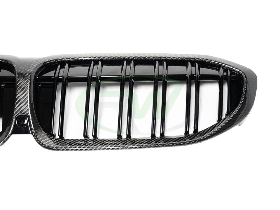 Professional installation is always recommended for RW Carbon’s products including these dual-slat carbon fiber grilles for your BMW G20. These G20 grilles install using the same mounting locations as the OEM grilles.