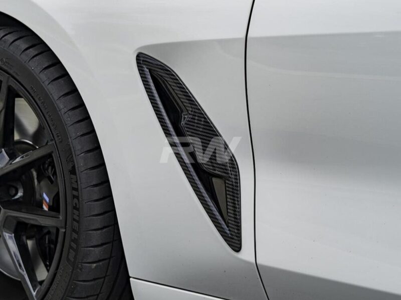 Add to your carbon fiber exterior theme with these new BMW 8 series carbon fiber fender trims. These are an overlay install with 3m tape and promoter. These are built using some of the highest quality 2×2 carbon fiber that money can buy. Our fender trims are made to match any other carbon fiber pieces already on the car. On top of these perks, they also come with a fitment and quality guarantee to ensure that you are receiving a high quality carbon fiber part. These fender trims will fit all G14, G15 and G16 8 series models including the 840i and M850i.
