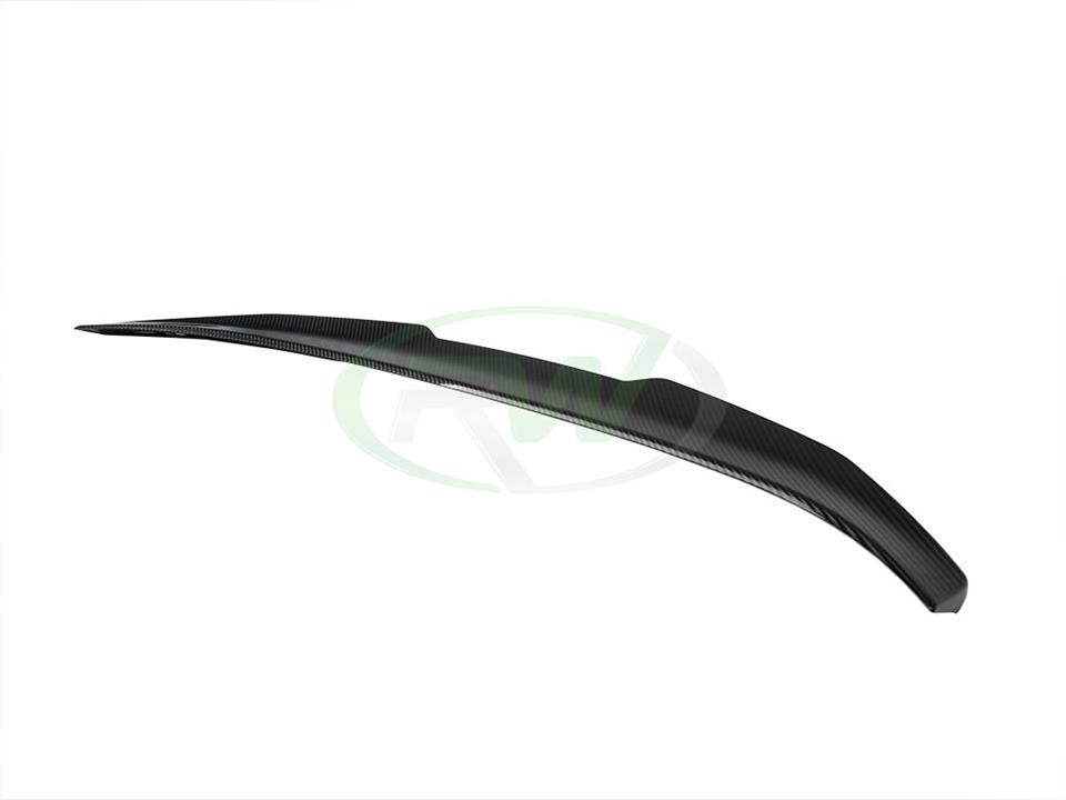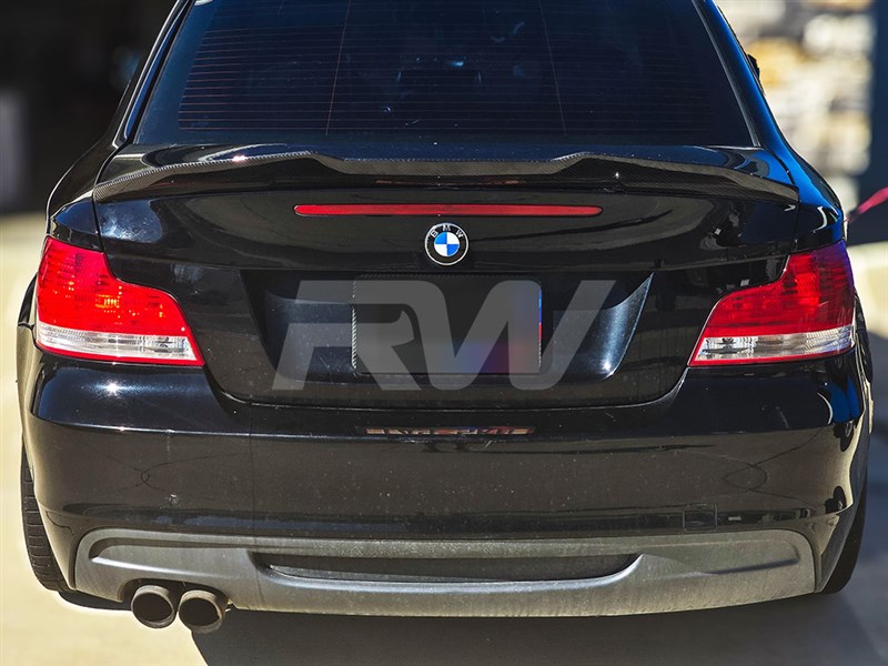 Elevate the rear profile of your 2020-2024 BMW E82 with this carbon fiber Trunk Spoiler from RW Carbon. This spoiler delivers a subtle yet impactful improvement to your vehicle's silhouette. Made from genuine carbon fiber and finished with a UV-resistant clear coat, it offers OEM-quality fitment and lasting visual appeal.