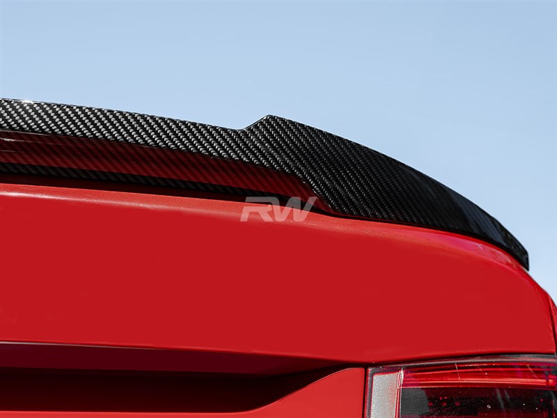 Elevate the rear profile of your 2020-2024 BMW F30 with this carbon fiber Trunk Spoiler from RW Carbon. This spoiler delivers a subtle yet impactful improvement to your vehicle's silhouette. Made from genuine carbon fiber and finished with a UV-resistant clear coat, it offers OEM-quality fitment and lasting visual appeal.