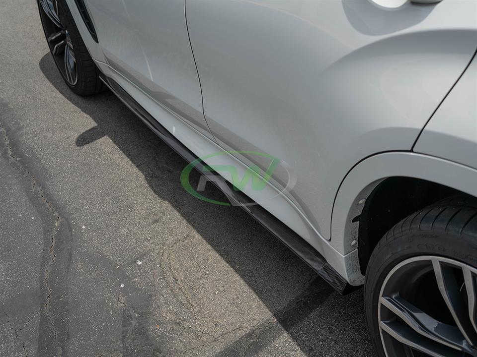 Enhance the side profile of your 2020-2024 BMW F16 with these carbon fiber Side Skirt Extensions from RW Carbon. Designed to seamlessly integrate with the factory rocker panels, these extensions create a lower, more aggressive stance. Constructed from premium carbon fiber with a high-gloss clear coat finish.