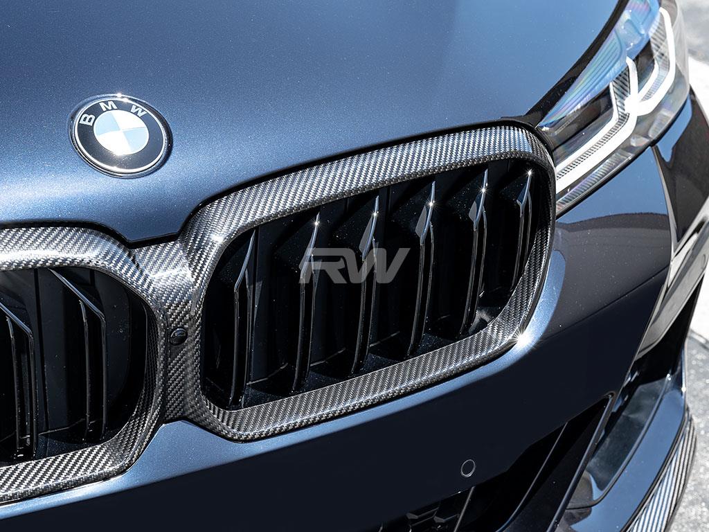 This carbon fiber grille replacement for the F90 M5 LCI G30 5 Series LCI installs using the same mounting locations as the OEM grilles. Access to the back side of the grille is required for removal.