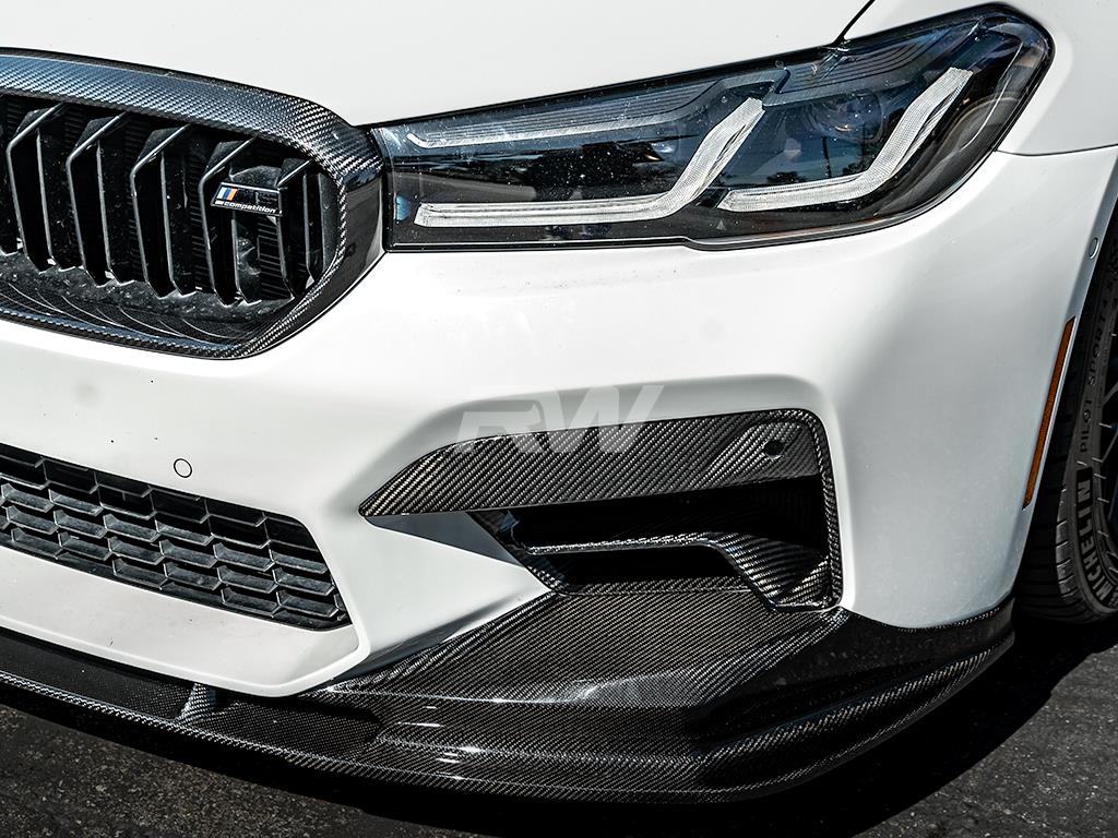 This BMW F90 M5 LCI Carbon Fiber Duct Trim is designed to install seamlessly over your existing trim, requiring no bumper removal for a hassle-free upgrade. Professional installation is always recommended for the best results.