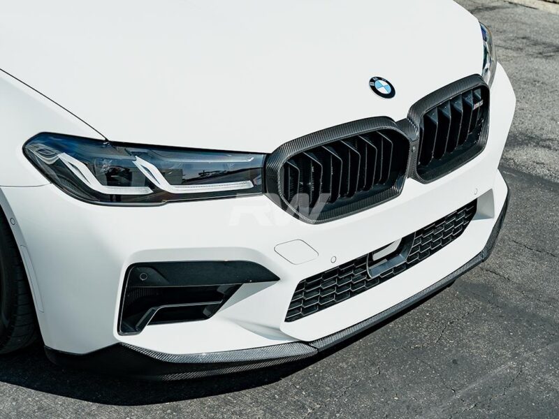Upgrade the exterior aero of your BMW F90 M5 LCI with our performance V1 carbon fiber front lip spoiler. This Carbon Fiber front lip features full dry carbon fiber construction that’s matched with a clear coated finish for that high gloss, showroom shine. As with all RW Carbon products, you can expect bolt-on installation that requires no special modifications to your vehicle. In order to ensure the highest quality carbon fiber on the market, we quality check every single one of our carbon fiber pieces that are shipped out to ensure there is no damage. These V1 front lips will fit all 2021-2023 BMW F90 M5 models. If you have any further questions about this RW Carbon front lip spoiler, please do not hesitate to contact us.