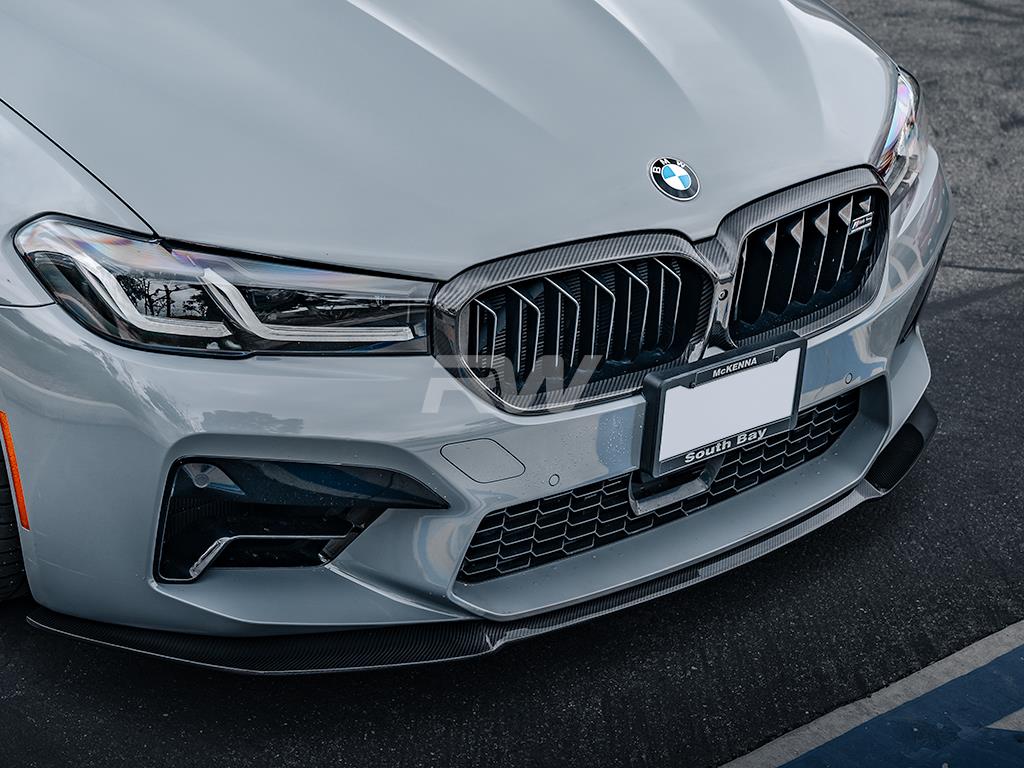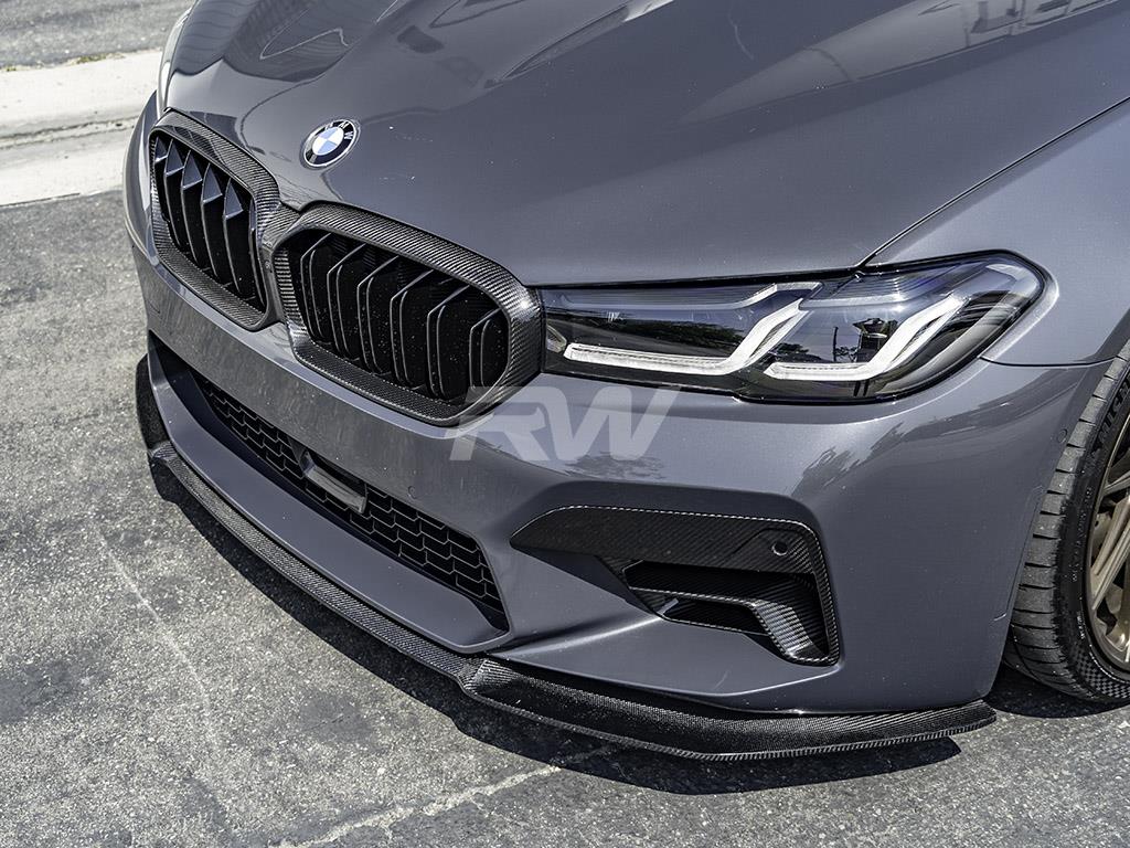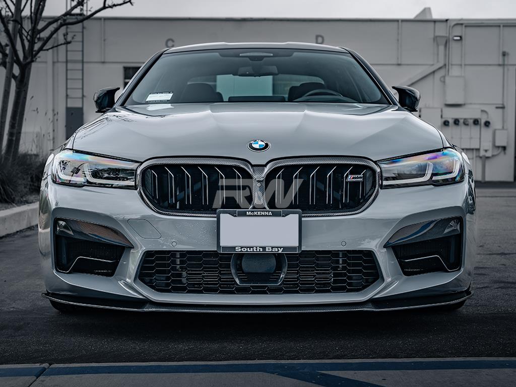 RW Carbon is happy to introduce our RW Signatures BMW F90 M5 LCI RWS Carbon Fiber Front Lip Spoiler. Upgrade the exterior aero of your BMW F90 M5 LCI with our newly released carbon fiber front lip. Designed by enthusiasts for enthusiasts at RW Carbon, this front lip features full carbon fiber construction that’s matched all other RW parts. It is clear coated to give your new front lip a high gloss and showroom finish. These will fit all 2021-2023 F90 M5 LCI models. As with all RW Carbon products, you can expect bolt-on installation that requires no special modifications to your vehicle. In order to ensure the highest quality carbon fiber on the market, we quality check every single one of our carbon fiber pieces that are shipped out to ensure there is no damage done to your part.