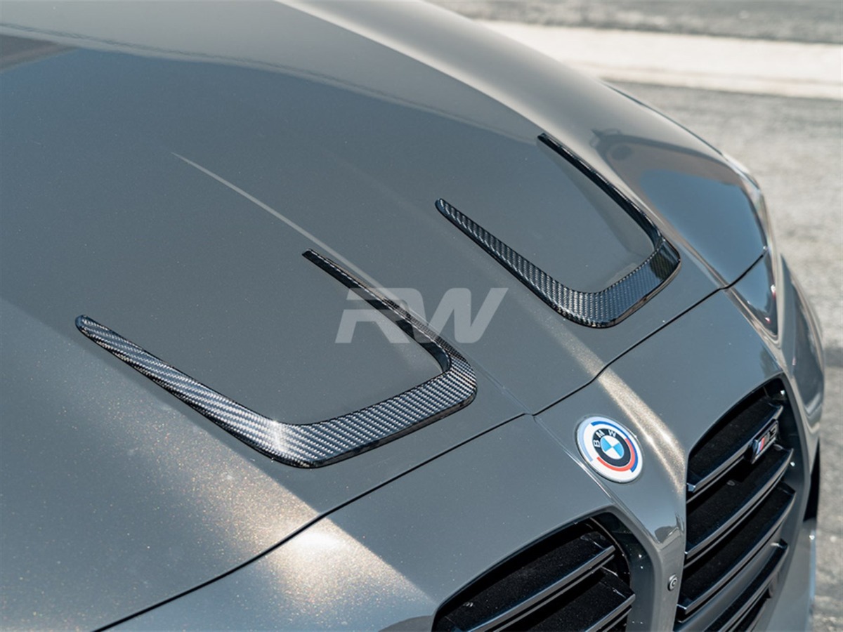 Elevate your BMW G8x M3/M4’s hood with RW’s Carbon Fiber Hood Vent Trim. Adds a small sporty look to the hood and is made from genuine 2×2 weave carbon fiber. Each trim is finished with a UV-resistant gloss clear coat for added protection and lasting shine. These vent trims are easy to install, so you can rest assured that the installation will be simple. For any questions, feel free to reach out to us!