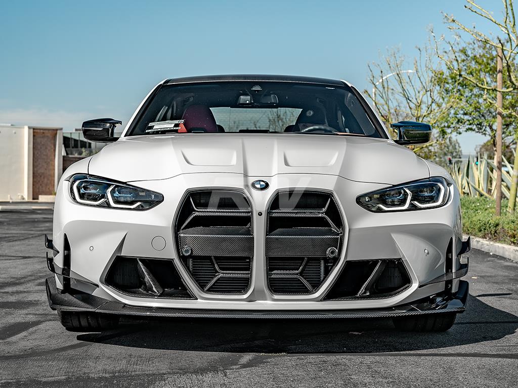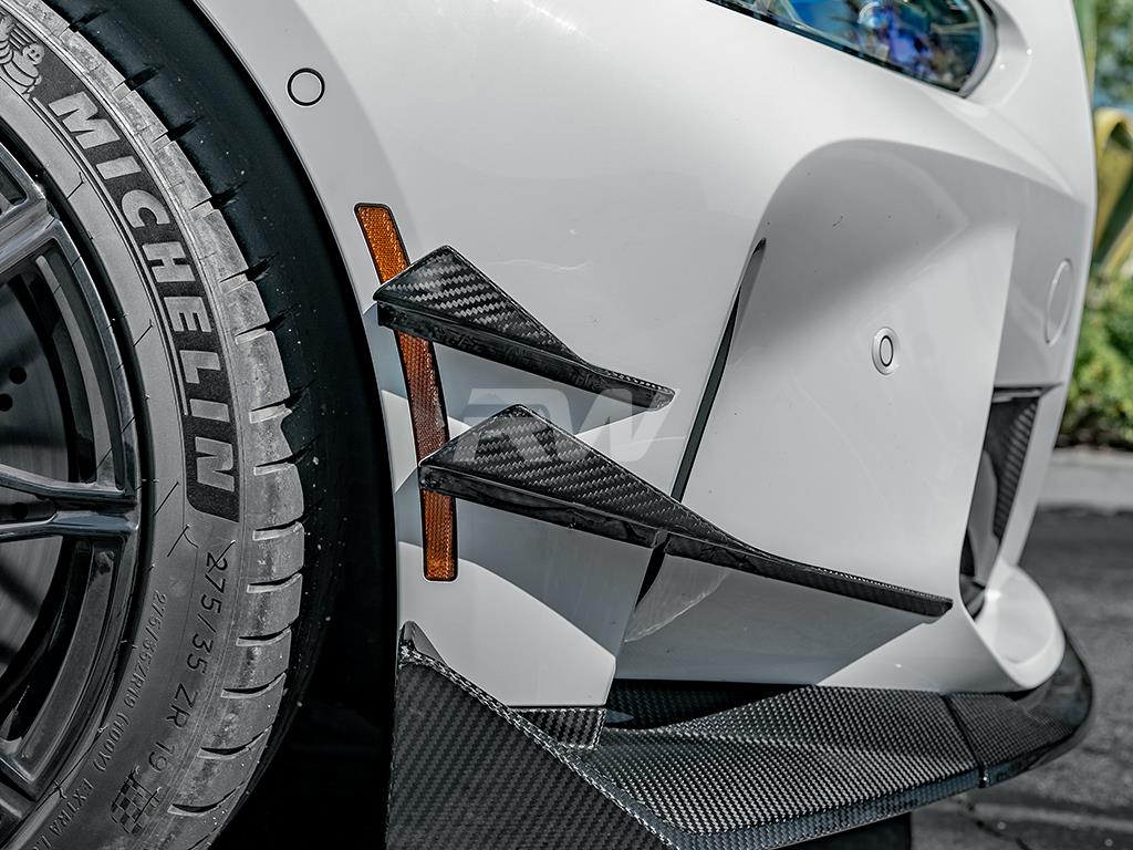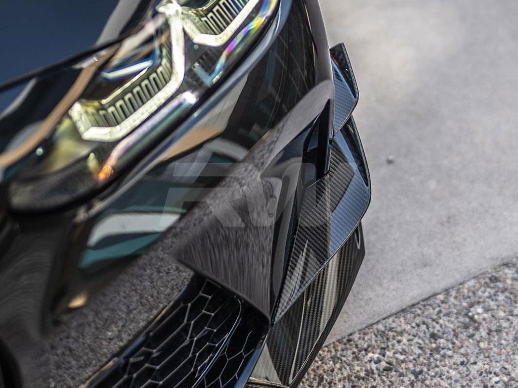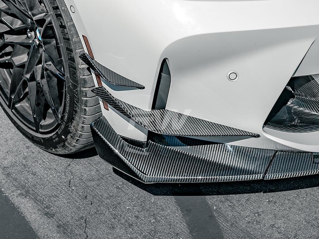 Receive some track inspired styling to an already aggressive vehicle with these DTM carbon fiber canards for your 2021+ BMW G80 M3 and G82/G83 M4. These canards feature genuine 2×2 carbon fiber weave that will match any other RW carbon parts or OEM carbon fiber parts that you may have on your G8X. Each order includes both the left and the right side canards. All canards are finished with a UV-resistant clear coat to ensure a lasting shine and shimmer over the years of use to come. These G80, G82 and G83 canards don’t only look great but they also add real downforce at high speeds so get a set today for your BMW M3 or M4.