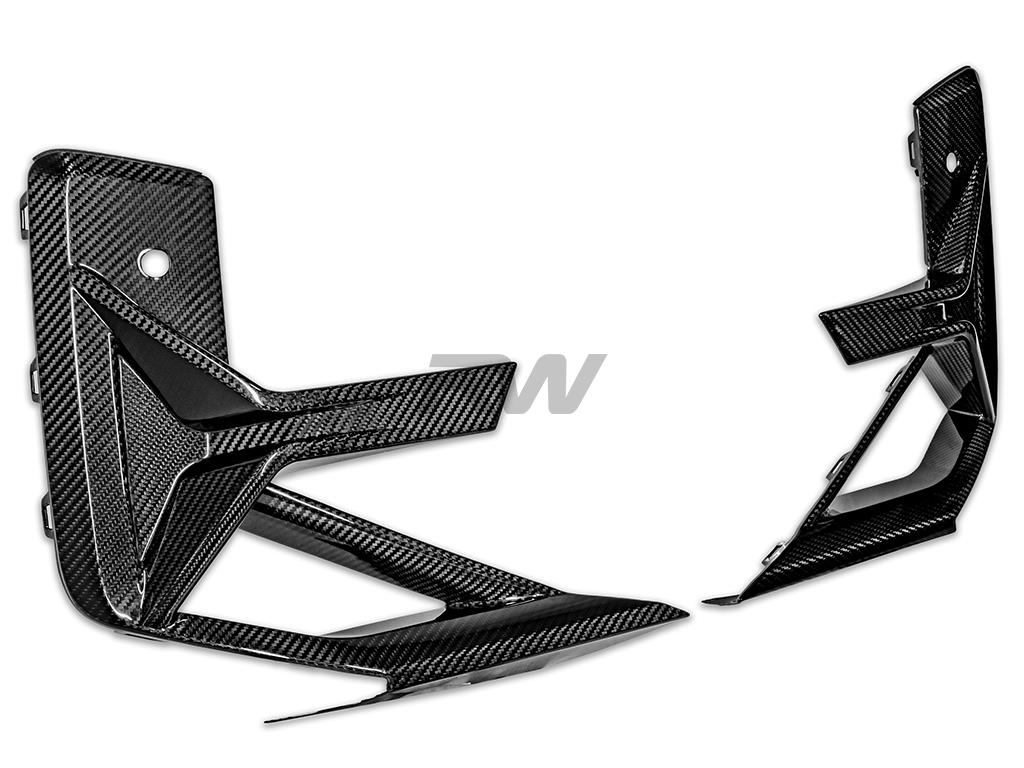 Revamp your F97 X3M LCI or F98 X4M LCI with the inclusion of RW Carbon’s Dry Carbon Fiber Front Bumper Trims. Say goodbye to the conventional gloss black trim and embrace a sophisticated upgrade seamlessly blending into your existing RW Carbon or OEM components. These trims, crafted with precision from real 2×2 weave dry carbon fiber, effortlessly fit into the OEM slot. The construction using carbon fiber ensures not just a reduction in weight but also an exceptionally sturdy addition to your X3M LCI or X4M LCI. Infuse a touch of race-inspired allure into your front bumper, introducing a distinctive and captivating element to your vehicle. The installation process is simple, requiring no special modifications. Tailored explicitly for BMW X3M LCI and X4M LCI models, these bumper trims play a huge role in achieving a polished and cohesive aesthetic for your ride. Unleash the complete potential of your X3M LCI or X4M LCI with RW Carbon’s premium front bumper trims.