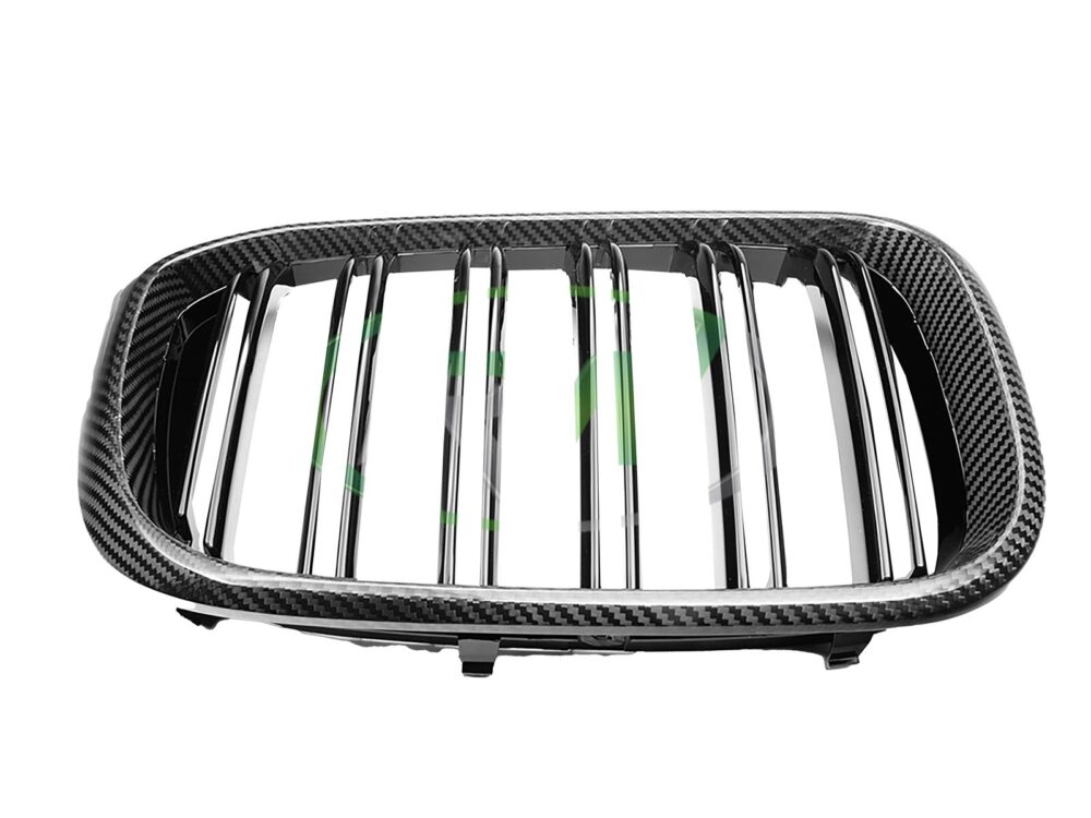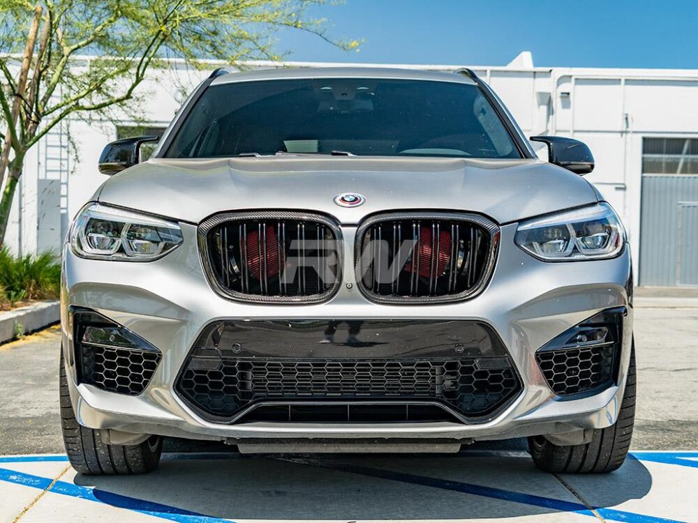 These carbon fiber dual slat grilles for your BMW Pre LCI G01 X3, G02 X4, F97 X3M, or F98 X4M replace the OEM grilles to give your BMW some instant carbon fiber accents. These grilles are built out of high-quality 2×2 carbon fiber weave to ensure that these pieces will match any other carbon fiber already on the car. These dual slat grilles are the perfect accent to add to a car to change the look of the front end. They pair great with a front lip or other RW Carbon fiber accessories. Each pair is clear coated and quality checked prior to shipping to your doorstep.