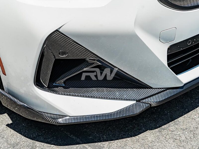 Check out our BMW G42 2-Series Carbon Fiber Front Bumper Air Ducts Trims, designed to give the front end of your G42 2-Series a sporty and aggressive feel! These front bumper trims are the ideal choice for either complementing your existing carbon fiber parts or starting on your carbon fiber journey since they are smaller parts compared to a hood or diffuser. Constructed from authentic 2×2 carbon fiber weave and finished with a high gloss clear coat, our trims are designed to protect against UV rays and everyday debris you might encounter. Although the installation process is straightforward, we strongly advise having these pieces professionally installed to achieve the best fitment and look. If you’re a carbon fiber enthusiast looking for an upgrade that’s small yet impactful, look no further!
