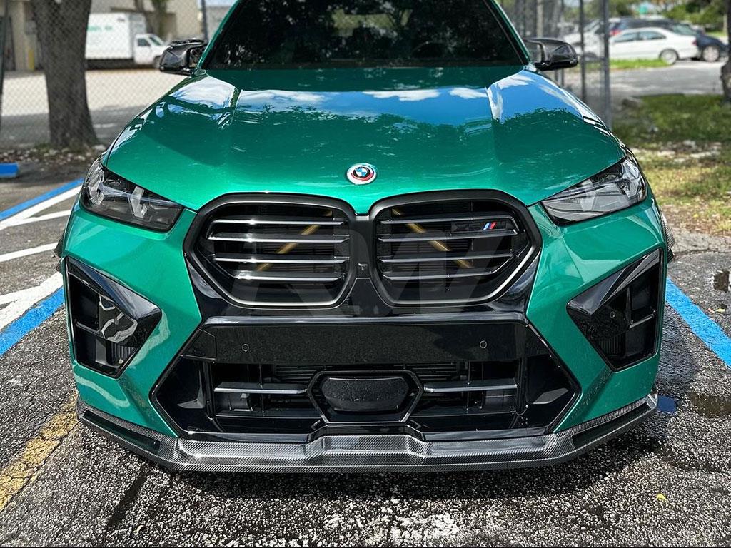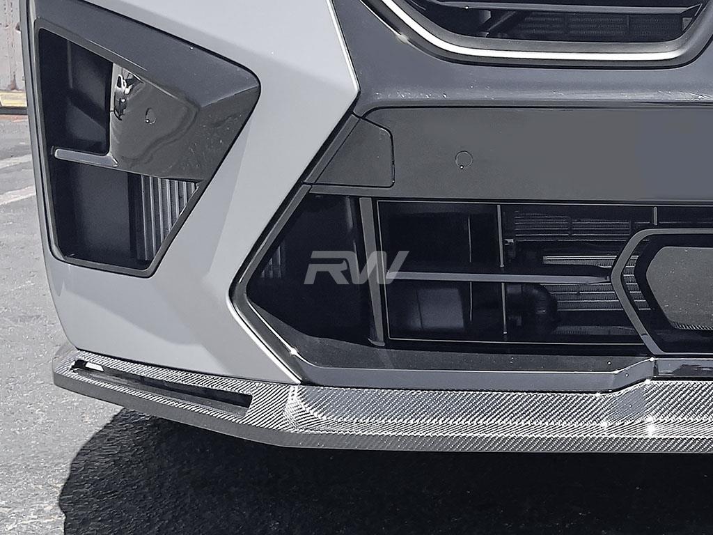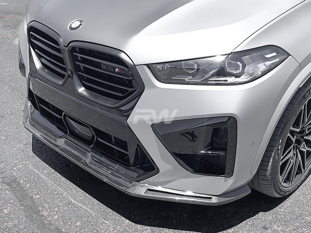 Elevate your 2024+ BMW F95 X5M LCI with the RW Signatures Carbon Fiber Front Lip Spoiler to give your front end a sleek and sporty look, perfect for starting off your carbon fiber journey. This front lip is designed in house at RW Carbon for a unique and bespoke design that is like nothing else on the market. Crafted with genuine 2×2 carbon fiber weave, this attention-grabbing enhancement ensures a seamless fit and long-lasting durability. Made by enthusiasts for enthusiasts, this front lip is a testament to both style and performance. Its clear coating not only provides protection against the elements but also prevents discoloration over time so that each piece maintains its shine throughout the years.