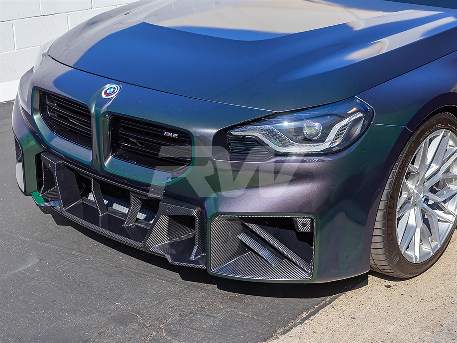 Revamp the front end of your BMW G87 M2 with RW Carbon’s Carbon Fiber Center Bumper Trim. Crafted with meticulous attention to detail, this center bumper trim is designed to seamlessly integrate into your G87 M2’s front-end aesthetics. The carbon fiber construction not only exudes a sporty and aggressive look but also ensures durability and longevity. It will replace your OEM trim piece and will install using all the same mounting locations. Each one is crafted using 100% dry carbon fiber and is then clear coated for a high gloss shine.