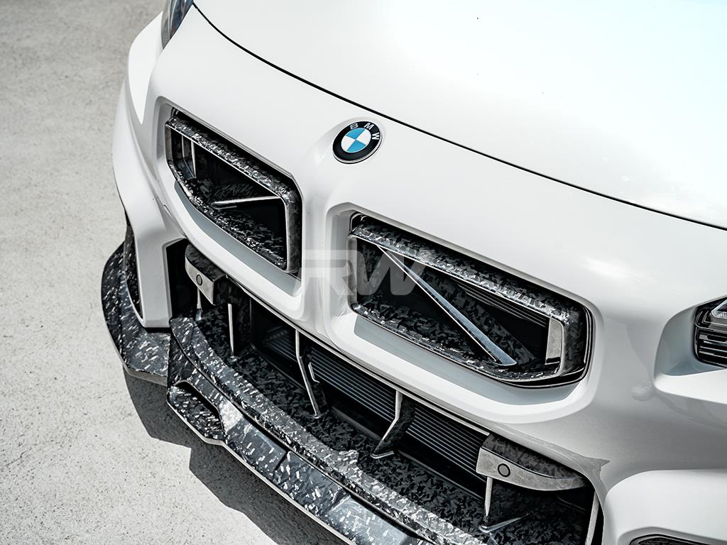 RW Carbon now offers a premium forged carbon alternative for the G87 M2 factory grilles. These BMW G87 M2 Forged Carbon GTX Grilles replace your current OEM grilles with a full forged carbon fiber upgrade. Crafted using 100% forged carbon fiber, these grilles will perfectly match any other RW or OEM carbon on your car. They are clear-coated for a glossy shine and UV protection. Installation requires the front bumper to be removed, utilizing OEM mounting locations.