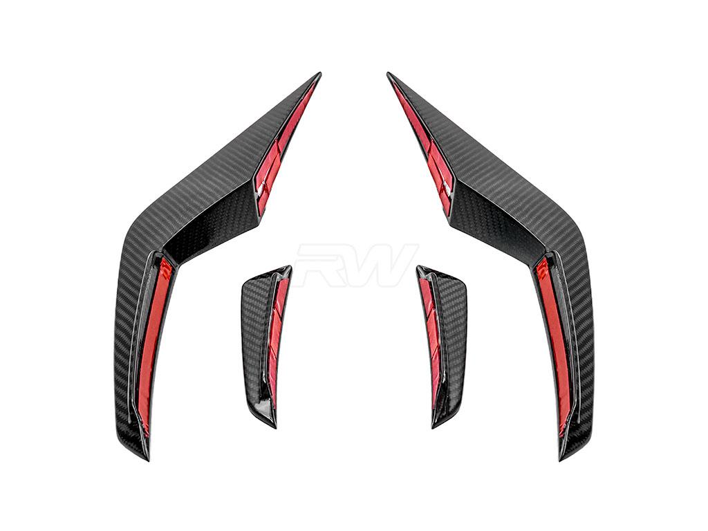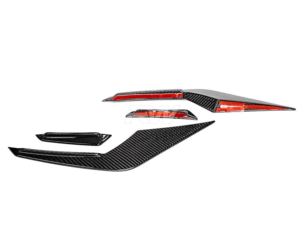 These BMW G90/G99 M5 carbon fiber canards are installed using 3M double-sided tape. Clean and prep the mounting area thoroughly before applying the tape. Press firmly into place to ensure a secure bond. For optimal fitment or professional installation, feel free to reach out to us directly.