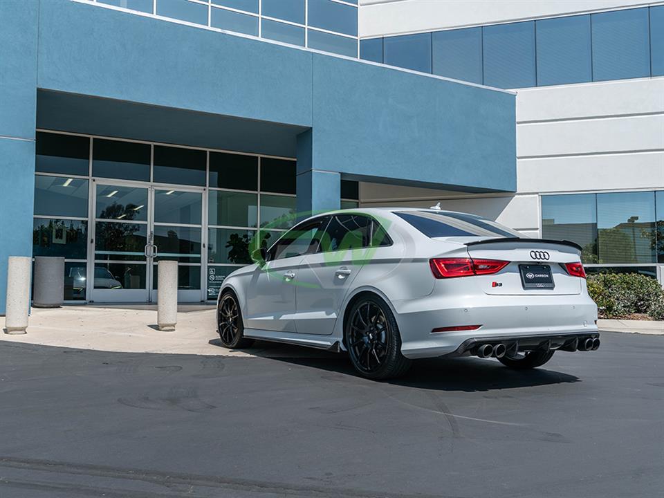 Introducing our latest item for your Pre-Facelift Audi S3, or A3 S-Line – our Carbon Fiber Rear Diffuser. This Diffuser is a direct replacement of your factory plastic diffuser and installs using the same mounting locations. We handcraft all of these Audi 8V diffusers from genuine 2×2 carbon fiber that will nicely match other RW items such as our front lips or trunk spoilers. Along with an aggressive back end appearance, this diffuser is also backed by our fitment and quality guaranteed to ensure that you’re receiving a high quality product that comes ready to install on your vehicle. Each diffuser ships from our CA warehouse and is also available for installation should you live close to us.