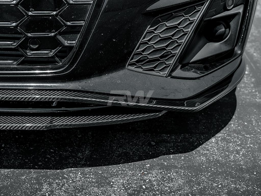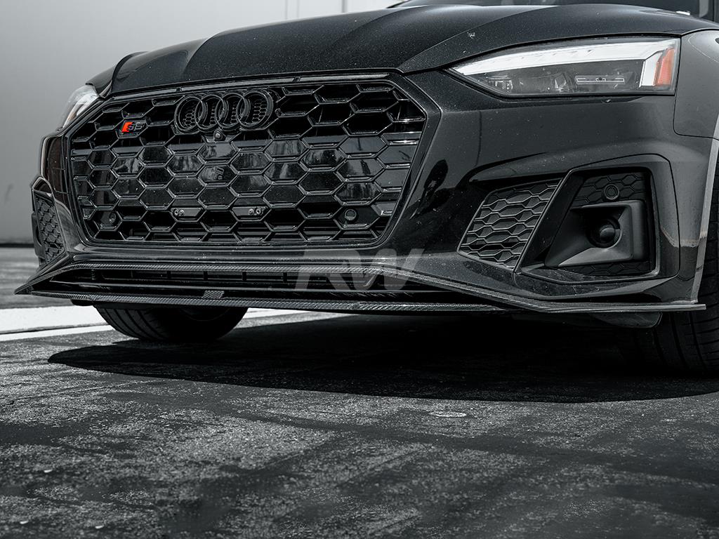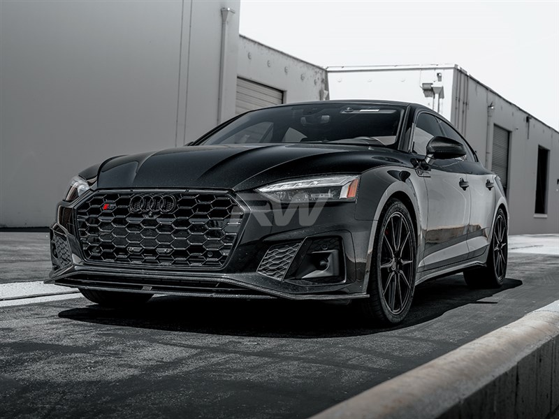 Upgrade the front-end presence of your Audi A5 with this carbon fiber Front Lip from RW Carbon. Designed for a precise OEM-like fitment, this lip adds an aggressive yet refined look to your vehicle's front fascia. Constructed from high-quality carbon fiber with a UV-resistant clear coat, it delivers both visual impact and lasting durability.