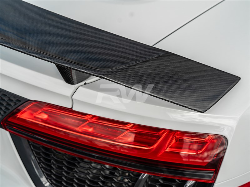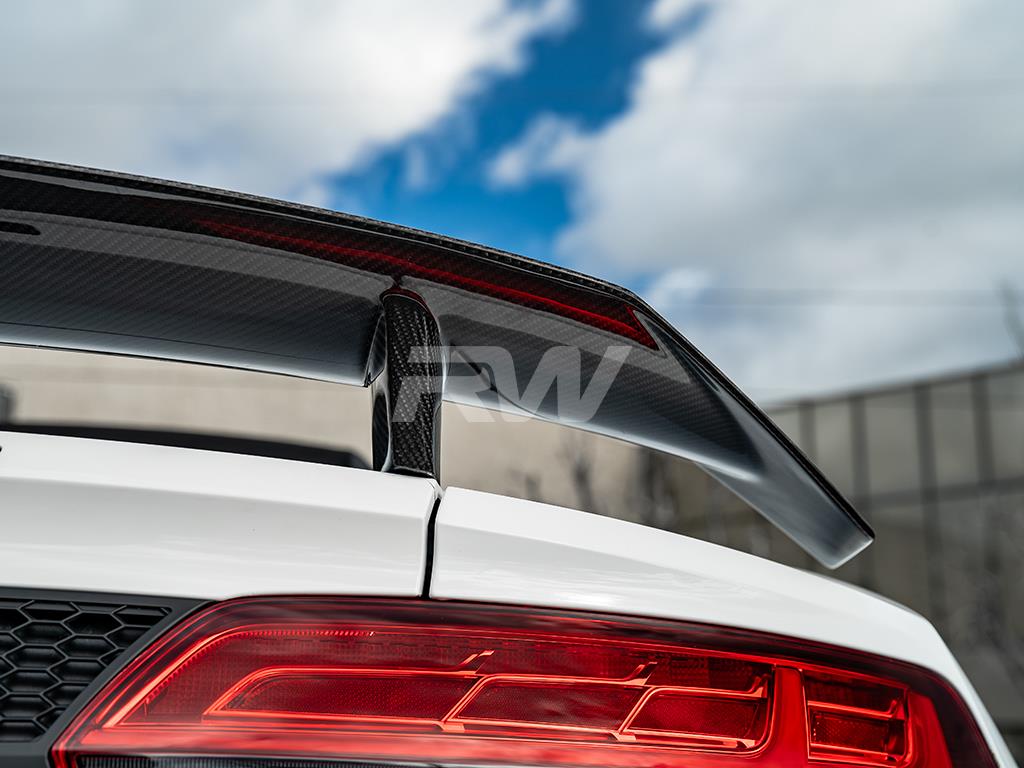 Add serious downforce aesthetic to your Audi R8 with this carbon fiber Rear Wing from RW Carbon. This wing delivers a commanding rear-end presence that sets your vehicle apart. Crafted from high-quality carbon fiber with a UV-protective clear coat for lasting beauty and performance.